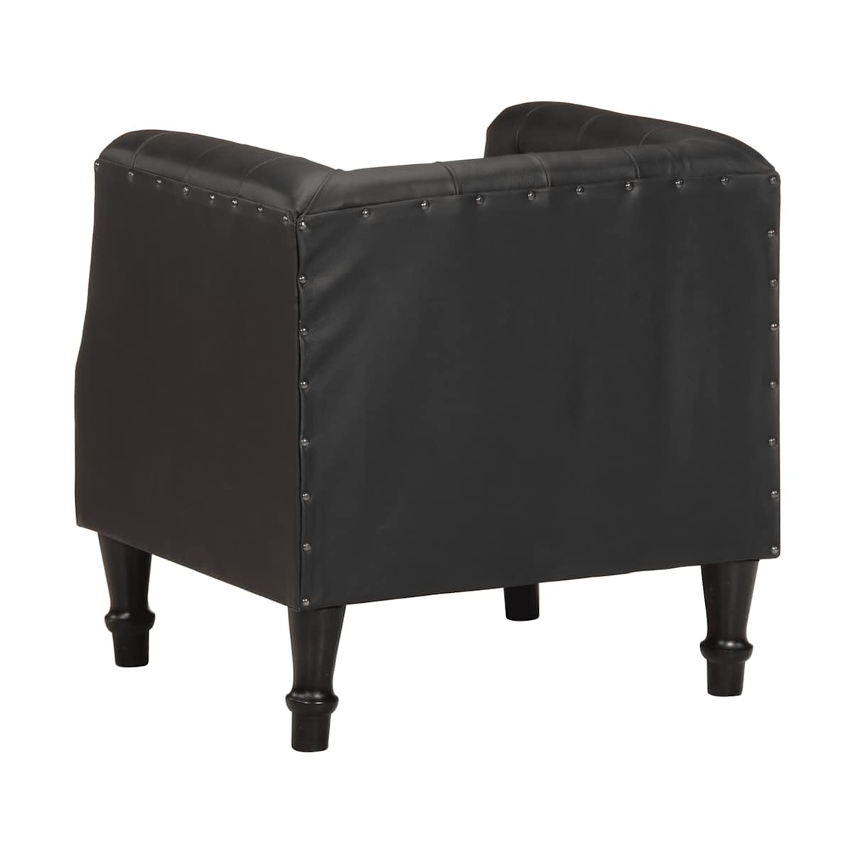 ¿Qué puede ser mejor que relajarse en un cómodo sillón al final de un ajetreado día de trabajo? Nuestro sillón de cuero auténtico será lo primero que desearás después de un largo día. El sillón está tapizado en cuero de cabra genuino, que es suave, duradero y emana un encanto vintage. La estructura está hecha de madera maciza de mango y aporta un estilo retro. La tapicería está acabada con remaches para un look industrial. Los reposabrazos curvos y el asiento y el respaldo gruesos y acolchados hacen que el sillón de cuero sea el lugar perfecto para sentarte cómodamente y relajarte por completo mientras ves la televisión o escuchas música. Este sillón hábilmente fabricado cuenta con un diseño clásico y atraerá la atención en tu sala de estar, dormitorio o habitación de invitados.