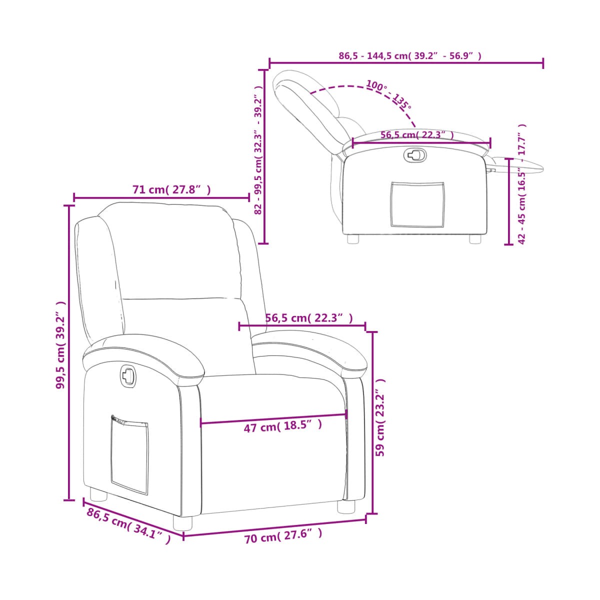 ¡Siéntate y descansa en este comodísimo sillón reclinable! Función de reclinado manual: Este sillón reclinable tiene un mango en el lado derecho. Con sólo tirar de él, puedes ajustar manualmente el reposapiés y el respaldo a cualquier posición que te resulte cómoda. Esta función permite una inclinación máxima de 135 grados. Además, el respaldo vuelve rápidamente a su posición original con solo tirar del mango.Cómodo asiento: El mullido asiento , el respaldo y los amplios reposabrazos cubiertos de tela proporcionan una sensación cómoda y acogedora, para que estés de maravilla mientras estás sentado. La tela posee un aspecto sencillo y limpio, y es transpirable y duradera.Práctico bolsillo lateral: Este sillón tiene un bolsillo lateral para que guardes tus cosas al alcance de la mano.Estructura maciza y estable: La estructura, hecha de madera y metal, proporciona una estructura y una estabilidad fuertes. Este sillón reclinables es cómodo y duradero.