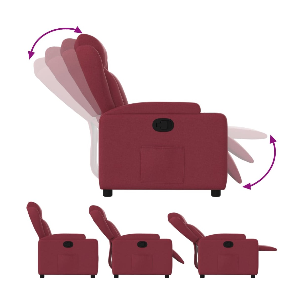 ¡Siéntate y descansa en este comodísimo sillón reclinable! Función de reclinado manual: Este sillón reclinable tiene un mango en el lado derecho. Con sólo tirar de él, puedes ajustar manualmente el reposapiés y el respaldo a cualquier posición que te resulte cómoda. Esta función permite una inclinación máxima de 135 grados. Además, el respaldo vuelve rápidamente a su posición original con solo tirar del mango.Cómodo asiento: El mullido asiento , el respaldo y los amplios reposabrazos cubiertos de tela proporcionan una sensación cómoda y acogedora, para que estés de maravilla mientras estás sentado. La tela posee un aspecto sencillo y limpio, y es transpirable y duradera.Prácticos portavasos y bolsillo lateral: Este sillón cuenta con dos cómodos portavasos para las bebidas y un bolsillo lateral para que guardes cosas al alcance de la mano.Estructura maciza y estable: La estructura, hecha de madera y metal, proporciona una estructura y una estabilidad fuertes. Este sillón reclinables es cómodo y duradero.