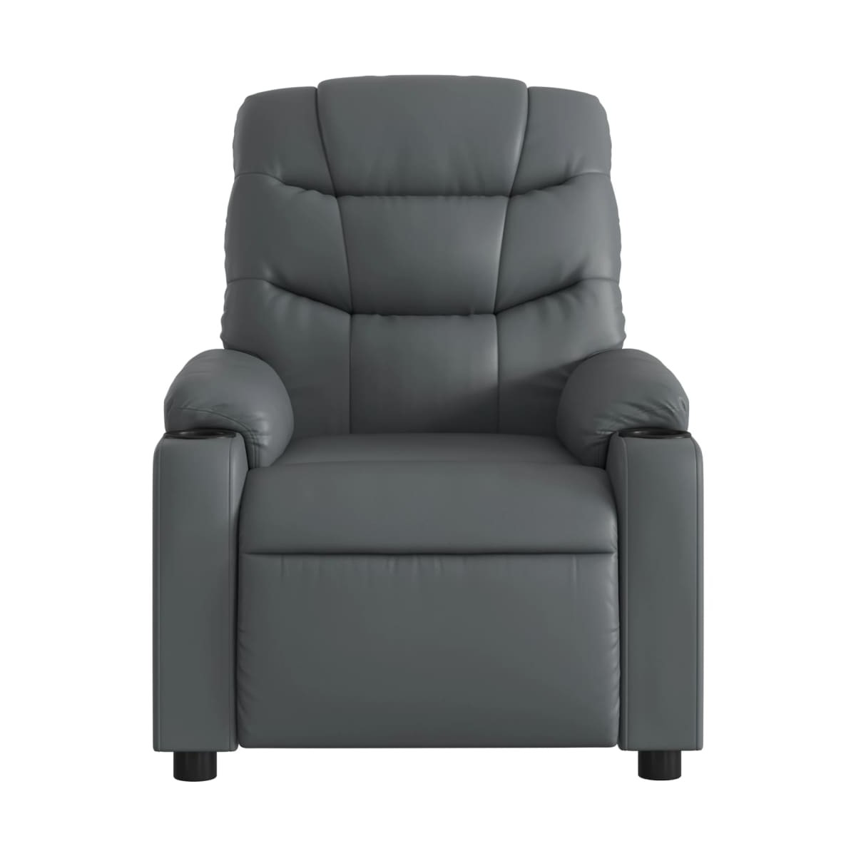 ¡Siéntate y descansa en este comodísimo sillón reclinable eléctrico! Función de reclinación eléctrica: Este sillón reclinable está equipado con un motor eléctrico para ajustar el reposapiés y el respaldo de forma automática a cualquier posición que desees con sólo pulsar el botón en el lateral del sillón. Esta característica permite una inclinación máxima de 135 grados. Además, el respaldo vuelve automáticamente a la posición original con sólo pulsar el botón.Cómodo asiento: El grueso acolchado del asiento, el respaldo y los anchos reposabrazos recubiertos de cuero sintético proporcionan una sensación acogedora y cálida, como si te estuvieran abrazando. El cuero sintético es un material muy duradero y resistente a las manchas, por lo que resulta fácil de limpiar con un paño húmedo. Además, la superficie lisa le confiere un aspecto lujoso y la belleza de la piel auténtica.Práctico bolsillo lateral: Este sillón tiene un bolsillo lateral para que guardes tus cosas al alcance de la mano.Estructura maciza y estable: La estructura, hecha de madera y metal, proporciona una estructura y una estabilidad fuertes. Este sillón reclinables es cómodo y duradero.
