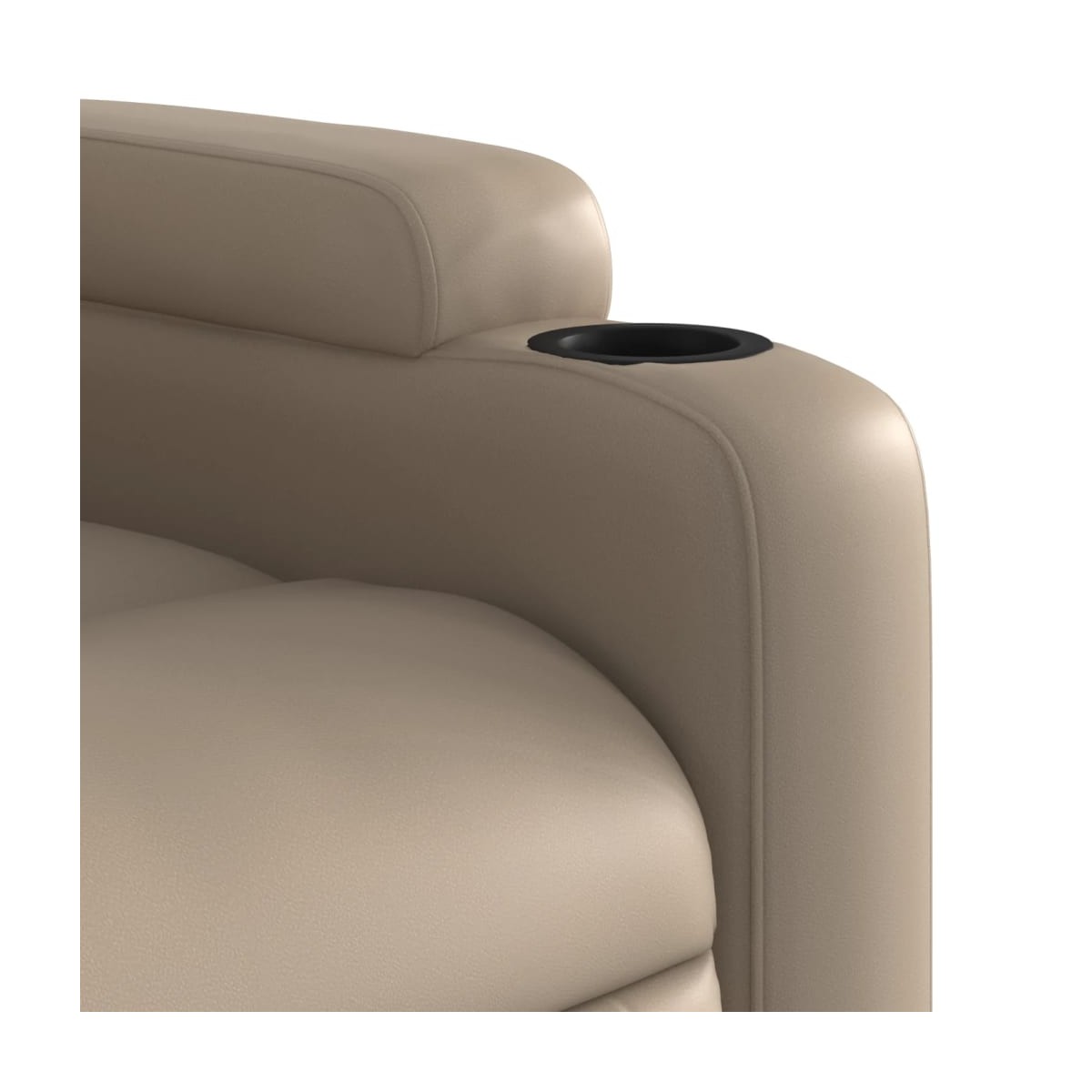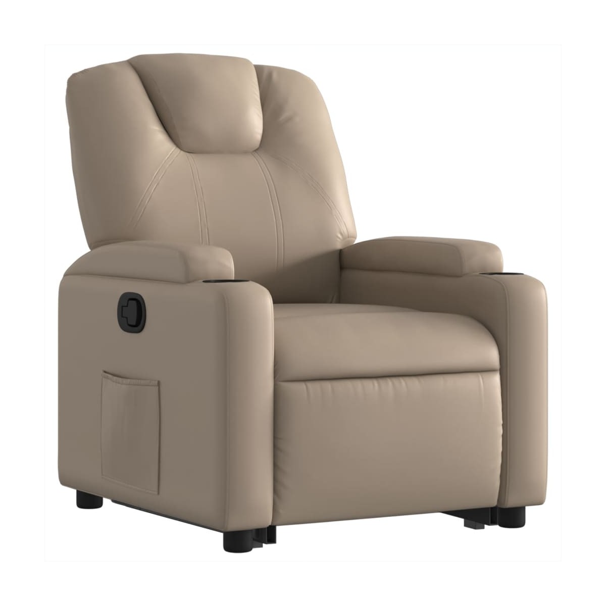 ¡Siéntate y descansa en este comodísimo sillón reclinable elevador! Función de elevación eléctrica: Este sillón reclinable para las personas mayores está equipado con un motor eléctrico para la función de elevación. Gracias a la función de elevación que empuja el sillón hacia arriba por completo, te puedes levantar fácilmente, sin tensiones en la espalda y las rodillas, con sólo pulsar el botón.Función de reclinado manual: Este sillón reclinable tiene un mango en el lado derecho. Con sólo tirar de él, puedes ajustar manualmente el reposapiés y el respaldo a cualquier posición que te resulte cómoda. Esta función permite una inclinación máxima de 135 grados. Además, el respaldo vuelve rápidamente a su posición original con solo tirar del mango.Cómodo asiento: El grueso acolchado del asiento, el respaldo y los anchos reposabrazos recubiertos de cuero sintético proporcionan una sensación acogedora y cálida, como si te estuvieran abrazando. El cuero sintético es un material muy duradero y resistente a las manchas, por lo que resulta fácil de limpiar con un paño húmedo. Además, la superficie lisa le confiere un aspecto lujoso y la belleza del cuero auténtico.Prácticos portavasos y bolsillo lateral: Este sillón cuenta con dos cómodos portavasos para las bebidas y un bolsillo lateral para que guardes cosas al alcance de la mano.Estructura maciza y estable: La estructura, hecha de madera y metal, proporciona una estructura y una estabilidad fuertes. Este sillón reclinables es cómodo y duradero.