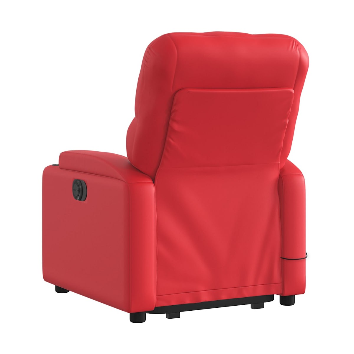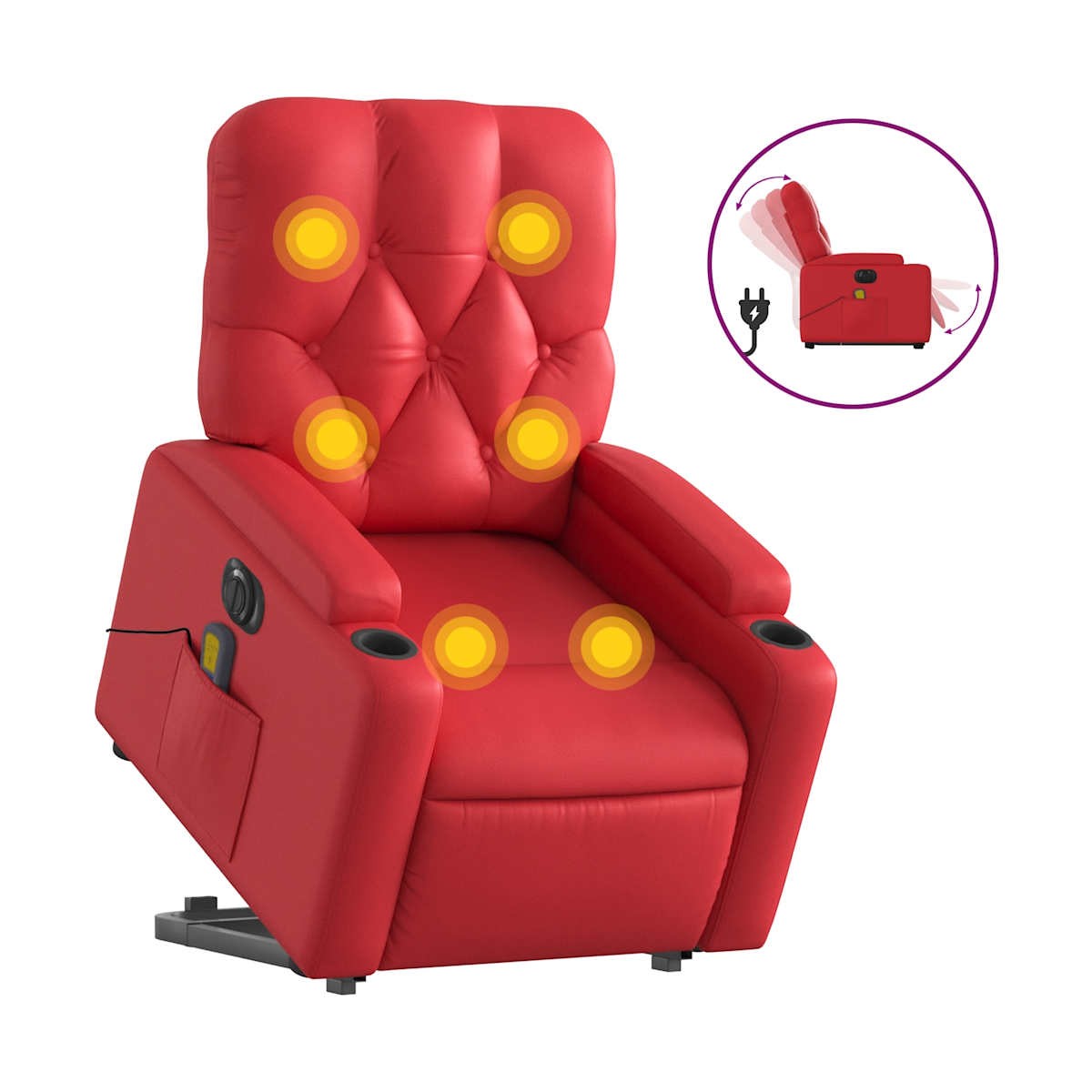 ¡Siéntate y déjate llevar en este cómodo sillón reclinable eléctrico! Función de elevación eléctrica: Este sillón reclinable para las personas mayores está equipado con un motor eléctrico para la función de elevación. Gracias a la función de elevación que empuja el sillón hacia arriba por completo, te puedes levantar fácilmente, sin tensiones en la espalda y las rodillas, con sólo pulsar el botón.Función reclinable eléctrica: Este sillón reclinable también está equipado con un motor eléctrico que ayuda a ajustar automáticamente el reposapiés y el respaldo a cualquier posición según tu comodidad con solo presionar el botón en el lateral del sillón. Esta característica permite una inclinación máxima de 135 grados. Además, el respaldo puede volver automáticamente a su lugar original con solo presionar un botón.Función de vibración: Los 6 puntos de masaje te harán disfrutar de un masaje mejor enfocado. Además, el mando incluido te permite elegir diferentes programas de masaje. La función de masaje funciona a través del conector USB que requiere una fuente de alimentación USB de 5 V certificada (no incluida).Cómodo asiento: El grueso acolchado del asiento, el respaldo y los anchos reposabrazos recubiertos de cuero sintético proporcionan una sensación acogedora y cálida, como si te estuvieran abrazando. El cuero sintético es un material muy duradero y resistente a las manchas, por lo que resulta fácil de limpiar con un paño húmedo. Además, la superficie lisa le confiere un aspecto lujoso y la belleza del cuero auténtico.Práctico bolsillo lateral: Este sillón cuenta con un bolsillo lateral para guardar el mando a distancia o mantener tus cosas al alcance de la mano.Estructura maciza y estable: La estructura, hecha de madera y metal, proporciona una estructura y una estabilidad fuertes. Este sillón reclinables es cómodo y duradero.