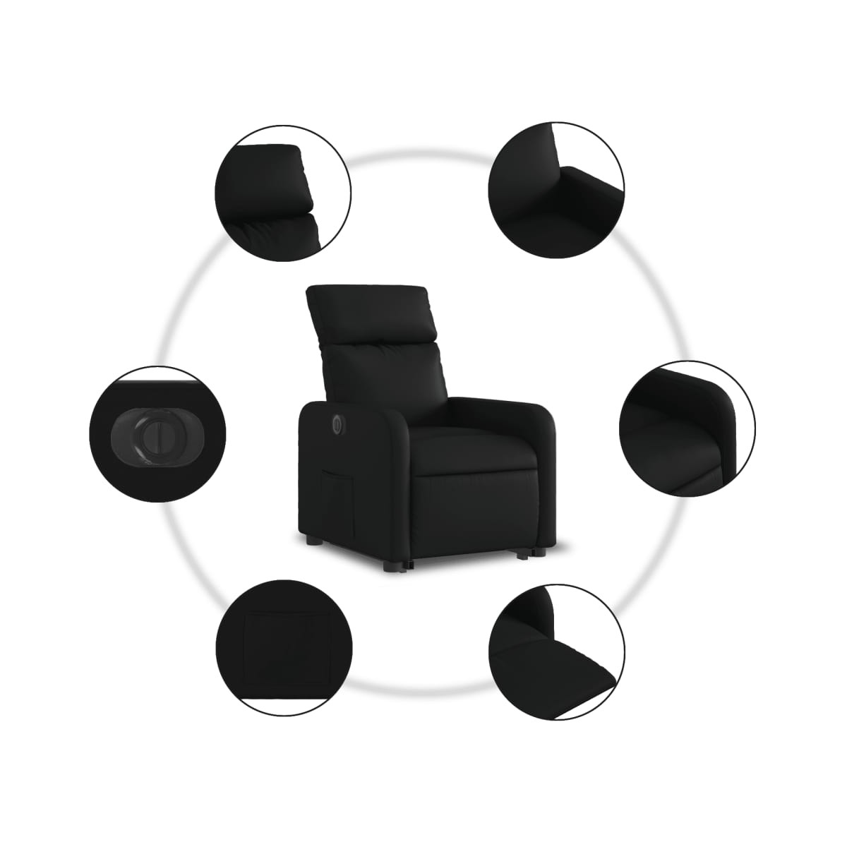 ¡Siéntate y déjate llevar en este comodísimo sillón reclinable y elevable eléctrico! Función de elevación eléctrica: Este sillón reclinable para las personas mayores está equipado con un motor eléctrico para la función de elevación. Gracias a la función de elevación que empuja el sillón hacia arriba por completo, te puedes levantar fácilmente, sin tensiones en la espalda y las rodillas, con sólo pulsar el botón.Función reclinable eléctrica: Este sillón reclinable también está equipado con un motor eléctrico que ayuda a ajustar el reposapiés y el respaldo de forma automática a cualquier posición que desees con solo presionar el botón en el lateral del sillón. Esta característica permite una inclinación máxima de 135 grados. Además, el respaldo vuelve automáticamente al lugar original con solo presionar el botón.Cómodo asiento: El grueso acolchado del asiento, el respaldo y los anchos reposabrazos recubiertos de cuero sintético proporcionan una sensación acogedora y cálida, como si te estuvieran abrazando. El cuero sintético es un material muy duradero y resistente a las manchas, por lo que resulta fácil de limpiar con un paño húmedo. Además, la superficie lisa le confiere un aspecto lujoso y la belleza del cuero auténtico.Práctico bolsillo lateral: Este sillón tiene un bolsillo lateral para que guardes tus cosas al alcance de la mano.Estructura maciza y estable: La estructura, hecha de madera y metal, proporciona una estructura y una estabilidad fuertes. Este sillón reclinables es cómodo y duradero.