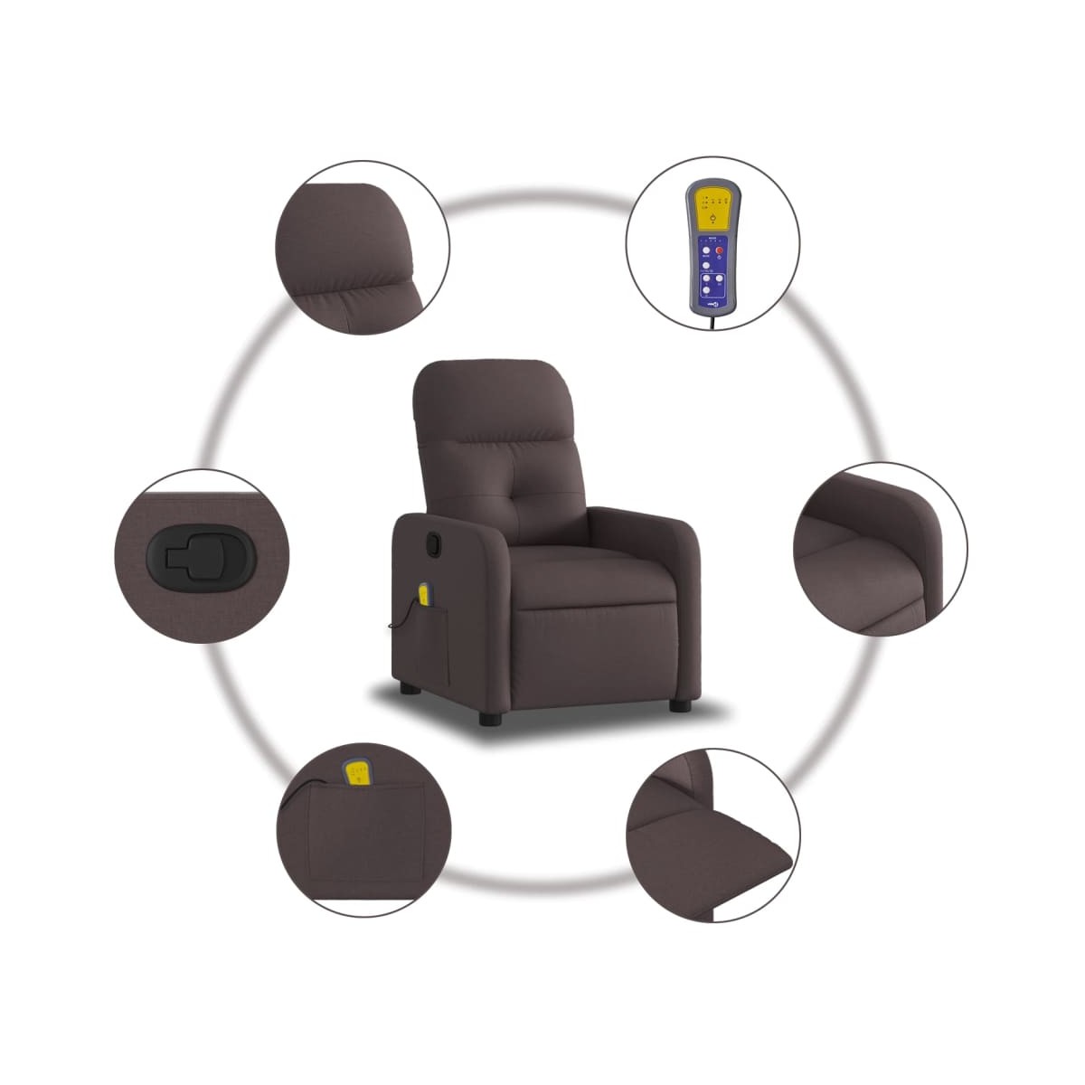 ¡Siéntate y descansa en este comodísimo sillón reclinable de masaje! Función de reclinado manual: Este sillón reclinable tiene un mango en el lado derecho. Con sólo tirar de él, puedes ajustar manualmente el reposapiés y el respaldo a cualquier posición que te resulte cómoda. Esta función permite una inclinación máxima de 135 grados. Además, el respaldo vuelve rápidamente a su posición original con solo tirar del mango.Función de vibración: Los 6 puntos de masaje te permiten disfrutar de un masaje mejor enfocado. Además, el mando incluido te permite elegir diferentes programas de masaje. La función de masaje funciona con el conector USB, pero no se incluye la fuente de alimentación USB de 5 V certificada.Cómodo asiento: El mullido asiento , el respaldo y los amplios reposabrazos cubiertos de tela proporcionan una sensación cómoda y acogedora, para que estés de maravilla mientras estás sentado. La tela posee un aspecto sencillo y limpio, y es transpirable y duradera.Práctico bolsillo lateral: Este sillón cuenta con un bolsillo lateral para guardar el mando a distancia o mantener tus cosas al alcance de la mano.Estructura maciza y estable: La estructura, hecha de madera y metal, proporciona una estructura y una estabilidad fuertes. Este sillón reclinables es cómodo y duradero.