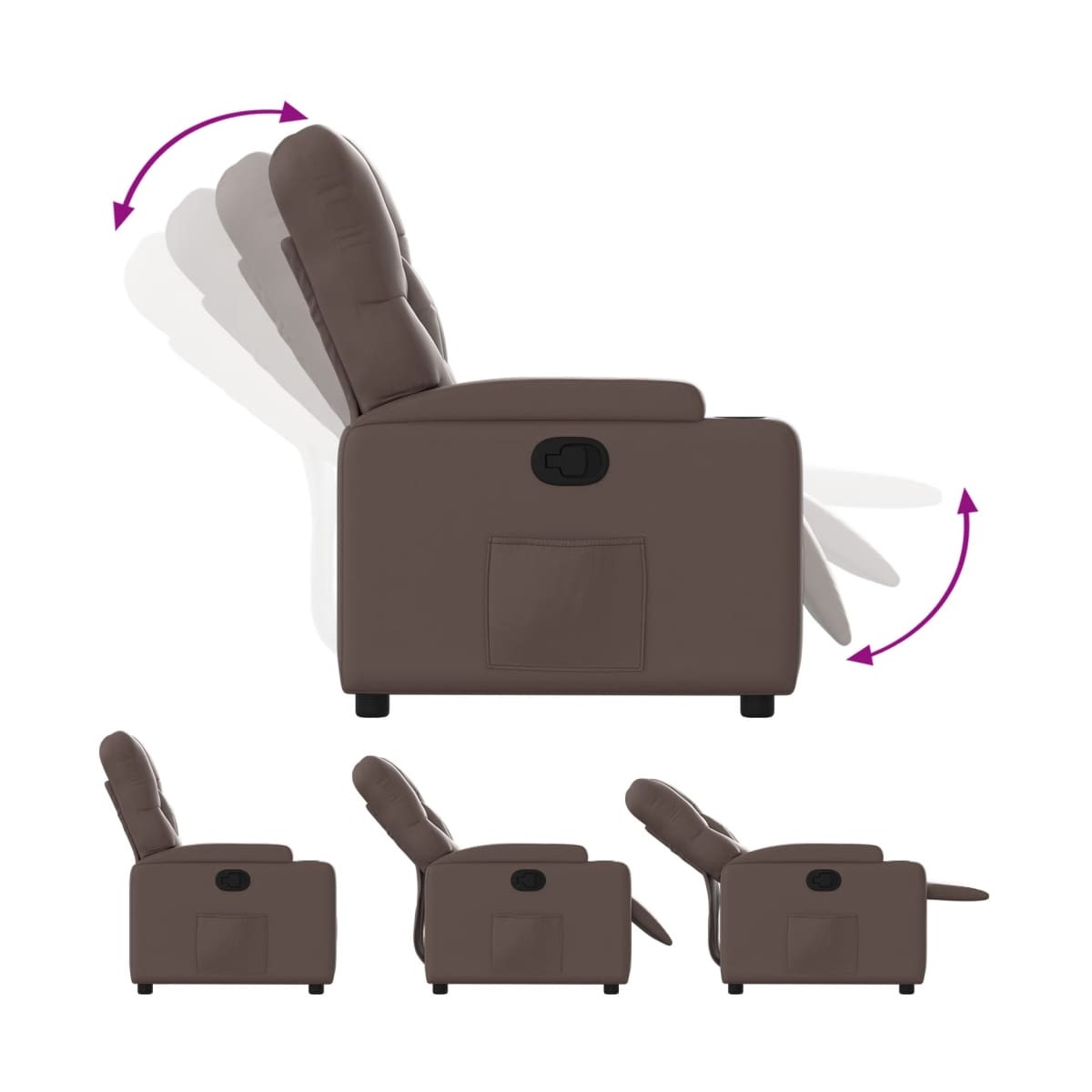 ¡Siéntate y descansa en este comodísimo sillón reclinable! Función de reclinado manual: Este sillón reclinable tiene un mango en el lado derecho. Con sólo tirar de él, puedes ajustar manualmente el reposapiés y el respaldo a cualquier posición que te resulte cómoda. Esta función permite una inclinación máxima de 135 grados. Además, el respaldo vuelve rápidamente a su posición original con solo tirar del mango.Cómodo asiento: El grueso acolchado del asiento, el respaldo y los anchos reposabrazos recubiertos de cuero sintético proporcionan una sensación acogedora y cálida, como si te estuvieran abrazando. El cuero sintético es un material muy duradero y resistente a las manchas, por lo que resulta fácil de limpiar con un paño húmedo. Además, la superficie lisa le confiere un aspecto lujoso y la belleza del cuero auténtico.Prácticos portavasos y bolsillo lateral: Este sillón cuenta con dos cómodos portavasos para las bebidas y un bolsillo lateral para que guardes cosas al alcance de la mano.Estructura maciza y estable: La estructura, hecha de madera y metal, proporciona una estructura y una estabilidad fuertes. Este sillón reclinables es cómodo y duradero.