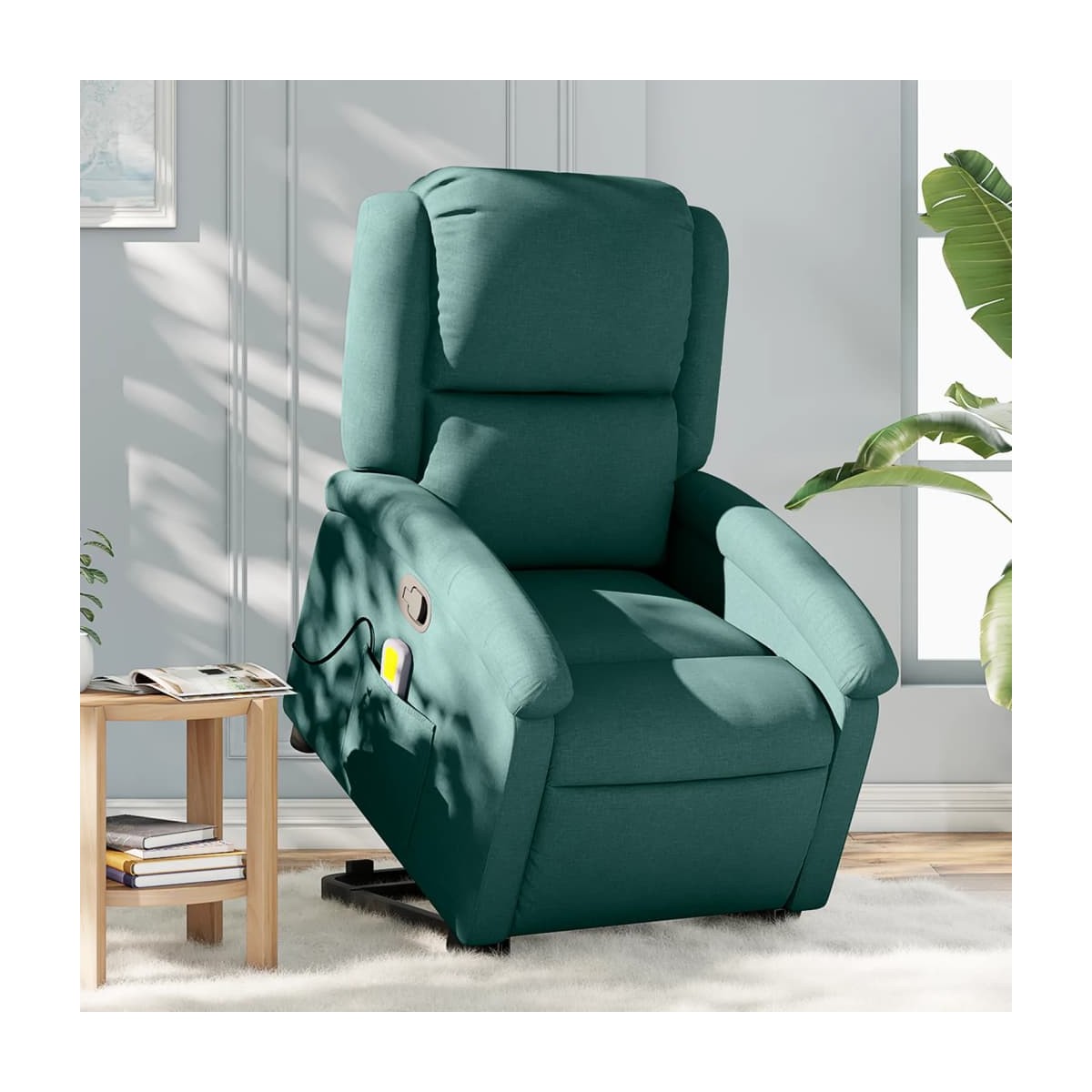 ¡Siéntate y descansa en este comodísimo sillón reclinable de masaje elevable! Función de elevación eléctrica: Este sillón reclinable para las personas mayores está equipado con un motor eléctrico para la función de elevación. Gracias a la función de elevación que empuja el sillón hacia arriba por completo, te puedes levantar fácilmente, sin tensiones en la espalda y las rodillas, con sólo pulsar el botón.Función de reclinado manual: Este sillón reclinable tiene un mango en el lado derecho. Con sólo tirar de él, puedes ajustar manualmente el reposapiés y el respaldo a cualquier posición que te resulte cómoda. Esta función permite una inclinación máxima de 135 grados. Además, el respaldo vuelve rápidamente a su posición original con solo tirar del mango.Función de vibración: Los 6 puntos de masaje te harán disfrutar de un masaje mejor enfocado. Además, el mando incluido te permite elegir diferentes programas de masaje. La función de masaje funciona a través del conector USB que requiere una fuente de alimentación USB de 5 V certificada (no incluida).Cómodo asiento: El mullido asiento , el respaldo y los amplios reposabrazos cubiertos de tela proporcionan una sensación cómoda y acogedora, para que estés de maravilla mientras estás sentado. La tela posee un aspecto sencillo y limpio, y es transpirable y duradera.Práctico bolsillo lateral: Este sillón cuenta con un bolsillo lateral para guardar el mando a distancia o mantener tus cosas al alcance de la mano.Estructura maciza y estable: La estructura, hecha de madera y metal, proporciona una estructura y una estabilidad fuertes. Este sillón reclinables es cómodo y duradero.