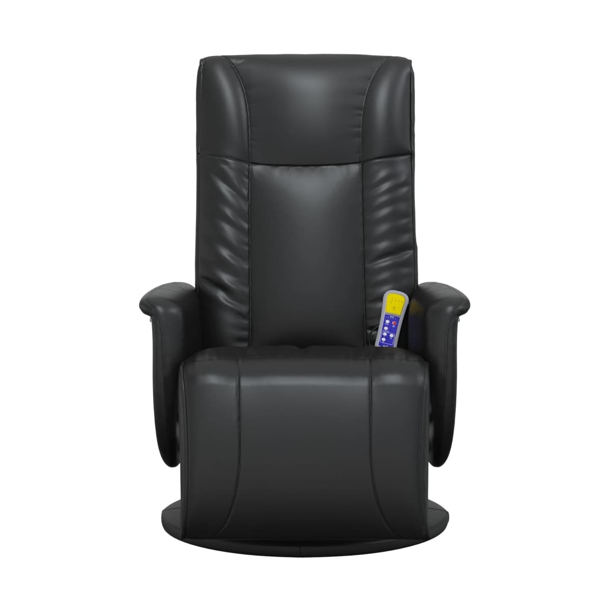 ¡Siéntate y descansa en este comodísimo sillón reclinable de masaje! Función reclinable manual: El sillón de masaje está especialmente diseñado con una función reclinable para que puedas ajustar el respaldo como quieras.Función de vibración: Los 6 puntos de masaje te harán disfrutar de un masaje mejor enfocado. Además, el mando incluido te permite elegir diferentes programas de masaje. La función de masaje funciona a través del conector USB que requiere una fuente de alimentación USB de 5 V certificada (no incluida).Giro de 360 grados: El sillón reclinable puede girar libremente 360 grados, lo que le confiere un plus de flexibilidad.Cómodo asiento: El asiento, el respaldo y los amplios reposabrazos mullidos y tapizados en cuero sintético brindan una sensación acogedora, para que estés de maravilla mientras estás sentado. La piel sintética es un material muy duradero. Es resistente a las manchas, por lo que se limpia fácilmente con un paño húmedo. Además, la superficie lisa aporta un aspecto lujoso y la belleza del cuero auténtico.Estructura maciza y estable: La estructura, hecha de madera contrachapada y metal, proporciona una estructura fuerte. La base redonda se agarra firmemente al suelo, para ofrecer una resistencia y una estabilidad óptimas.