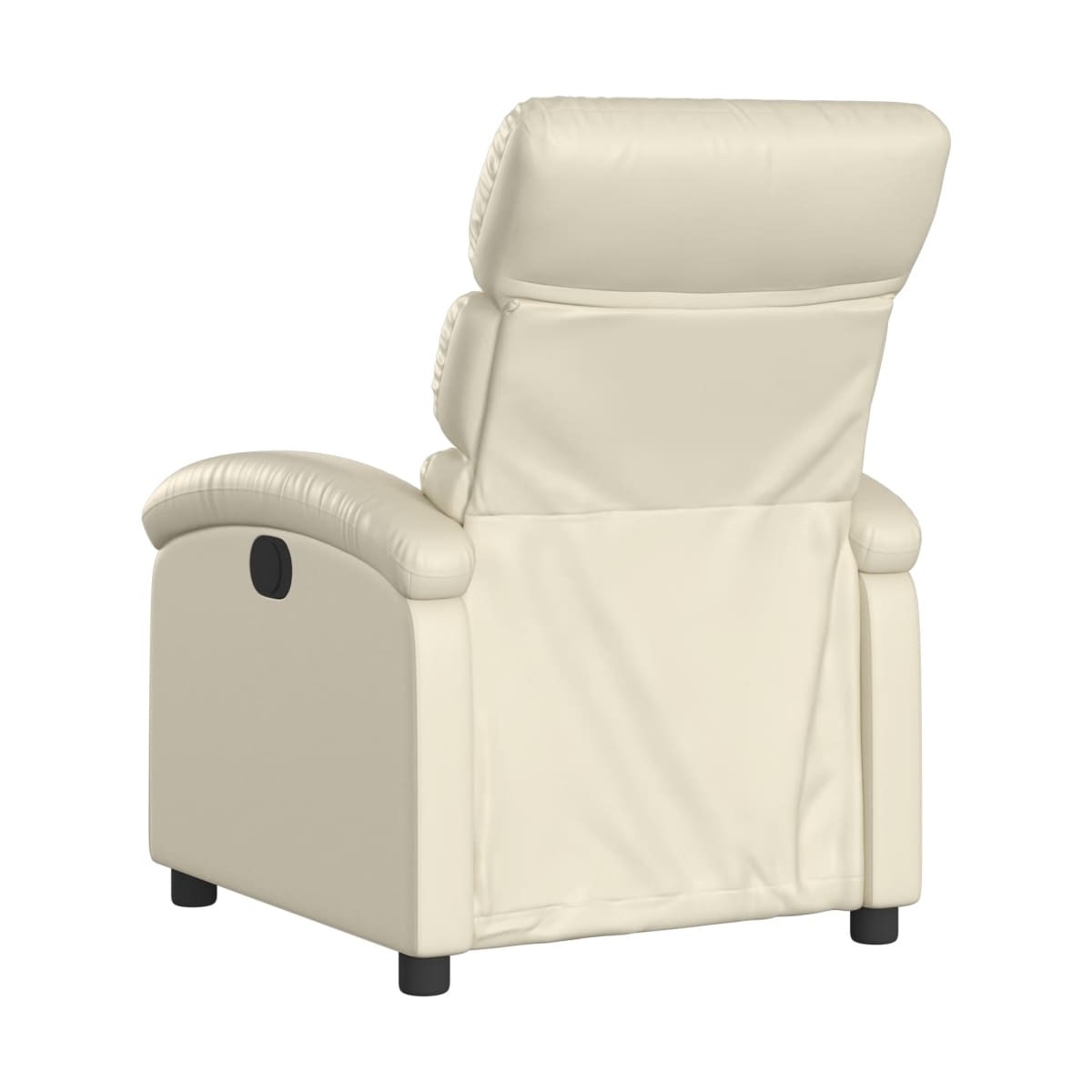 ¡Siéntate y descansa en este comodísimo sillón reclinable eléctrico! Función de reclinación eléctrica: Este sillón reclinable está equipado con un motor eléctrico para ajustar el reposapiés y el respaldo de forma automática a cualquier posición que desees con sólo pulsar el botón en el lateral del sillón. Esta característica permite una inclinación máxima de 135 grados. Además, el respaldo vuelve automáticamente a la posición original con sólo pulsar el botón.Cómodo asiento: El grueso acolchado del asiento, el respaldo y los anchos reposabrazos recubiertos de cuero sintético proporcionan una sensación acogedora y cálida, como si te estuvieran abrazando. El cuero sintético es un material muy duradero y resistente a las manchas, por lo que resulta fácil de limpiar con un paño húmedo. Además, la superficie lisa le confiere un aspecto lujoso y la belleza del cuero auténtico.Práctico bolsillo lateral: Este sillón tiene un bolsillo lateral para que guardes tus cosas al alcance de la mano.Estructura maciza y estable: La estructura, hecha de madera y metal, proporciona una estructura y una estabilidad fuertes. Este sillón reclinables es cómodo y duradero.