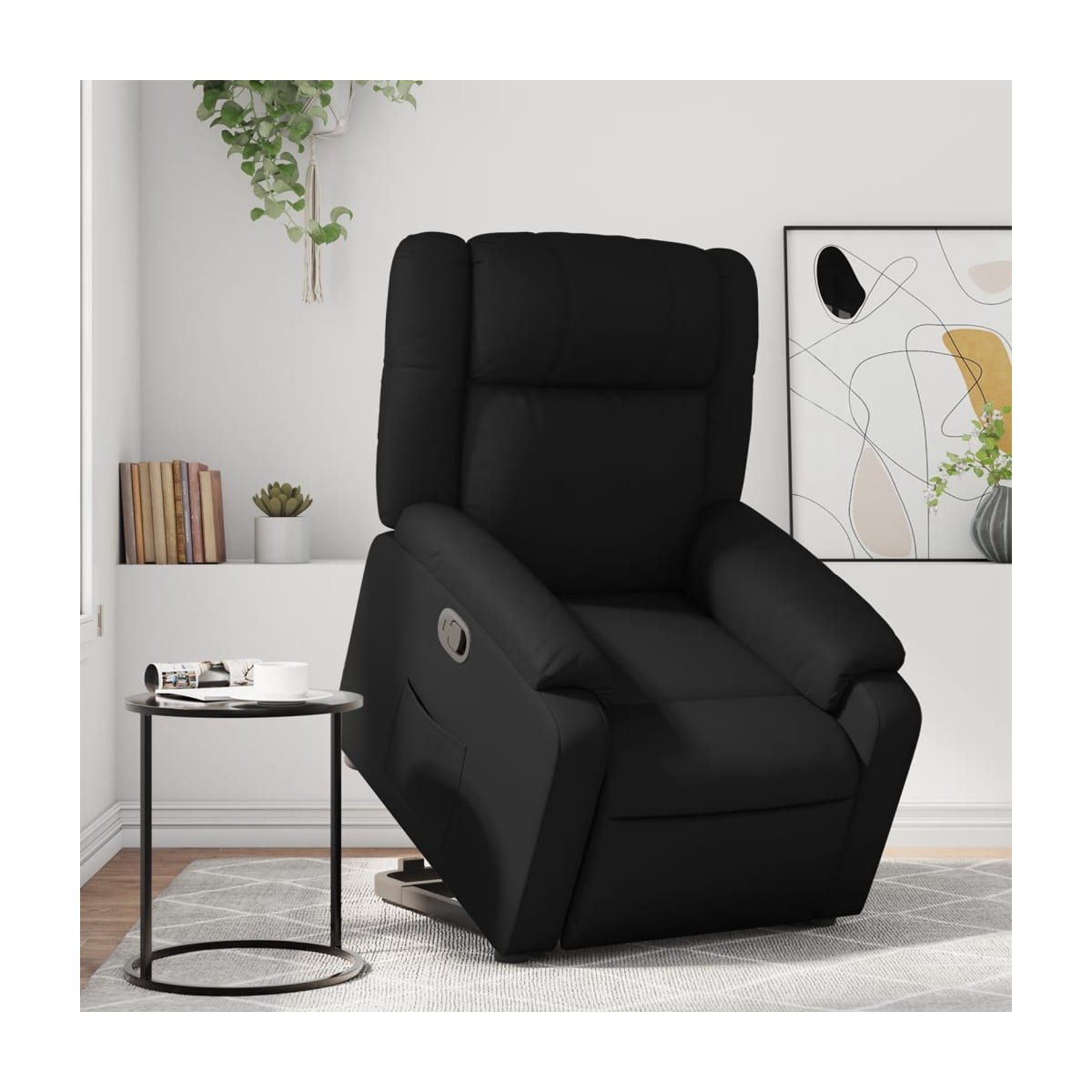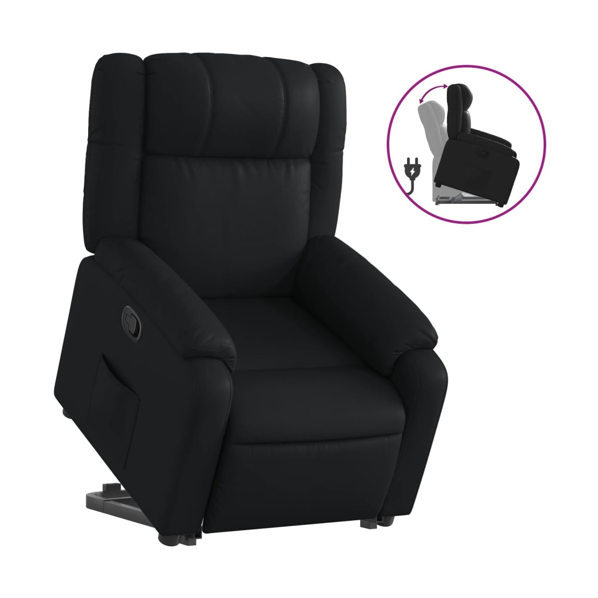 ¡Siéntate y descansa en este comodísimo sillón reclinable elevador! Función de elevación eléctrica: Este sillón reclinable para las personas mayores está equipado con un motor eléctrico para la función de elevación. Gracias a la función de elevación que empuja el sillón hacia arriba por completo, te puedes levantar fácilmente, sin tensiones en la espalda y las rodillas, con sólo pulsar el botón.Función de reclinado manual: Este sillón reclinable tiene un mango en el lado derecho. Con sólo tirar de él, puedes ajustar manualmente el reposapiés y el respaldo a cualquier posición que te resulte cómoda. Esta función permite una inclinación máxima de 135 grados. Además, el respaldo vuelve rápidamente a su posición original con solo tirar del mango.Cómodo asiento: El grueso acolchado del asiento, el respaldo y los anchos reposabrazos recubiertos de cuero sintético proporcionan una sensación acogedora y cálida, como si te estuvieran abrazando. El cuero sintético es un material muy duradero y resistente a las manchas, por lo que resulta fácil de limpiar con un paño húmedo. Además, la superficie lisa le confiere un aspecto lujoso y la belleza de la piel auténtica.Práctico bolsillo lateral: Este sillón tiene un bolsillo lateral para que guardes tus cosas al alcance de la mano.Estructura maciza y estable: La estructura, hecha de madera y metal, proporciona una estructura y una estabilidad fuertes. Este sillón reclinables es cómodo y duradero.