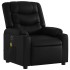 ¡Siéntate y descansa en este comodísimo sillón reclinable de masaje eléctrico! Función de reclinación eléctrica: Este sillón reclinable está equipado con un motor eléctrico para ajustar el reposapiés y el respaldo de forma automática a cualquier posición que desees con sólo pulsar el botón en el lateral del sillón. Esta característica permite una inclinación máxima de 135 grados. Además, el respaldo vuelve automáticamente a la posición original con sólo pulsar el botón.Función de vibración: Los 6 puntos de masaje te harán disfrutar de un masaje mejor enfocado. Además, el mando incluido te permite elegir diferentes programas de masaje. La función de masaje funciona a través del conector USB que requiere una fuente de alimentación USB de 5 V certificada (no incluida).Cómodo asiento: El grueso acolchado del asiento, el respaldo y los anchos reposabrazos recubiertos de cuero sintético proporcionan una sensación acogedora y cálida, como si te estuvieran abrazando. El cuero sintético es un material muy duradero y resistente a las manchas, por lo que resulta fácil de limpiar con un paño húmedo. Además, la superficie lisa le confiere un aspecto lujoso y la belleza del cuero auténtico.Práctico bolsillo lateral: Este sillón cuenta con un bolsillo lateral para guardar el mando a distancia o mantener tus cosas al alcance de la mano.Estructura maciza y estable: La estructura, hecha de madera y metal, proporciona una estructura y una estabilidad fuertes. Este sillón reclinables es cómodo y duradero.