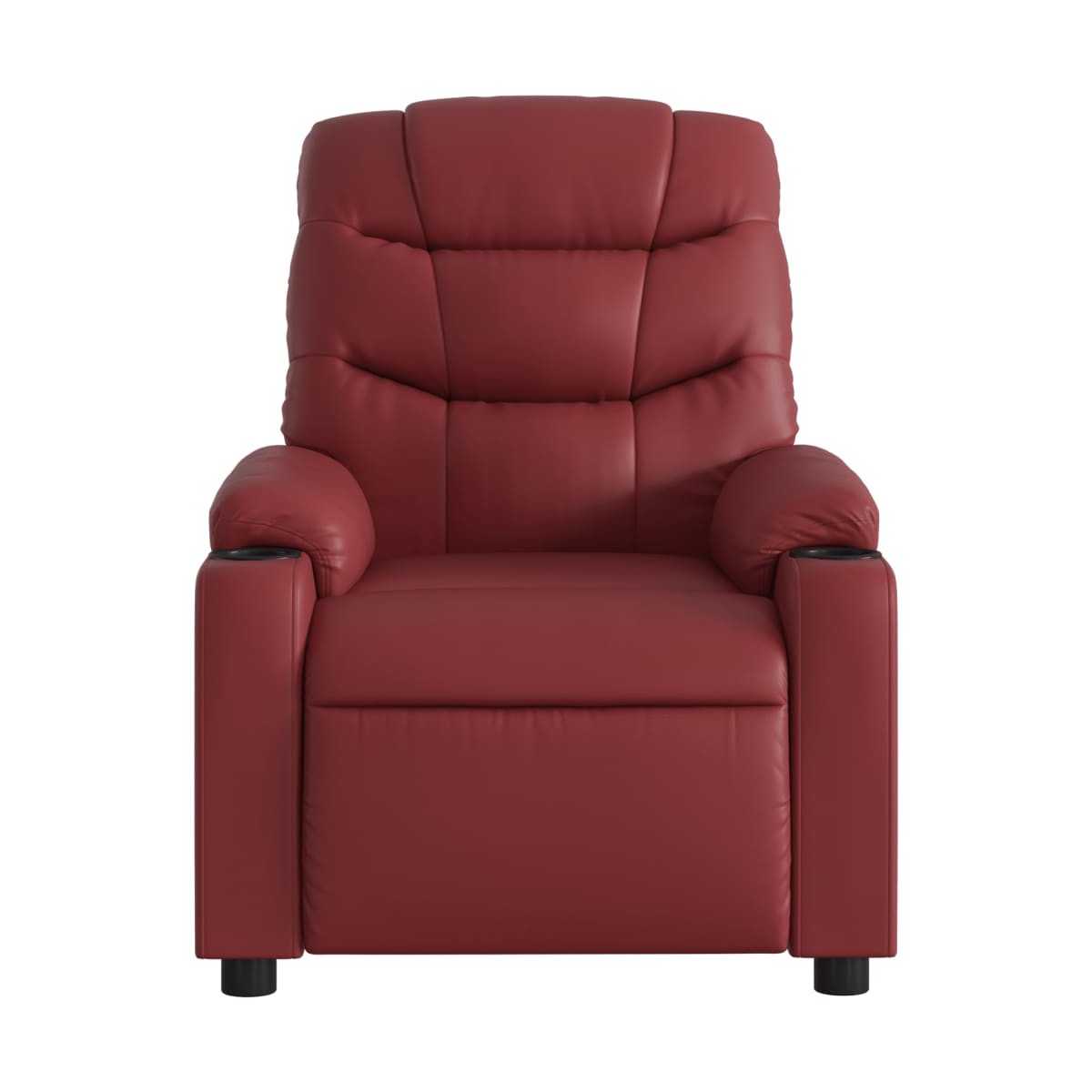 ¡Siéntate y descansa en este comodísimo sillón reclinable eléctrico! Función de reclinación eléctrica: Este sillón reclinable está equipado con un motor eléctrico para ajustar el reposapiés y el respaldo de forma automática a cualquier posición que desees con sólo pulsar el botón en el lateral del sillón. Esta característica permite una inclinación máxima de 135 grados. Además, el respaldo vuelve automáticamente a la posición original con sólo pulsar el botón.Cómodo asiento: El grueso acolchado del asiento, el respaldo y los anchos reposabrazos recubiertos de cuero sintético proporcionan una sensación acogedora y cálida, como si te estuvieran abrazando. El cuero sintético es un material muy duradero y resistente a las manchas, por lo que resulta fácil de limpiar con un paño húmedo. Además, la superficie lisa le confiere un aspecto lujoso y la belleza de la piel auténtica.Práctico bolsillo lateral: Este sillón tiene un bolsillo lateral para que guardes tus cosas al alcance de la mano.Estructura maciza y estable: La estructura, hecha de madera y metal, proporciona una estructura y una estabilidad fuertes. Este sillón reclinables es cómodo y duradero.