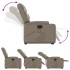 ¡Siéntate y déjate llevar en este cómodo sillón reclinable eléctrico! Función de elevación eléctrica: Este sillón reclinable para las personas mayores está equipado con un motor eléctrico para la función de elevación. Gracias a la función de elevación que empuja el sillón hacia arriba por completo, te puedes levantar fácilmente, sin tensiones en la espalda y las rodillas, con sólo pulsar el botón.Función reclinable eléctrica: Este sillón reclinable también está equipado con un motor eléctrico que ayuda a ajustar automáticamente el reposapiés y el respaldo a cualquier posición según tu comodidad con solo presionar el botón en el lateral del sillón. Esta característica permite una inclinación máxima de 135 grados. Además, el respaldo puede volver automáticamente a su lugar original con solo presionar un botón.Función de vibración: Los 6 puntos de masaje te harán disfrutar de un masaje mejor enfocado. Además, el mando incluido te permite elegir diferentes programas de masaje. La función de masaje funciona a través del conector USB que requiere una fuente de alimentación USB de 5 V certificada (no incluida).Cómodo asiento: El grueso acolchado del asiento, el respaldo y los anchos reposabrazos recubiertos de cuero sintético proporcionan una sensación acogedora y cálida, como si te estuvieran abrazando. El cuero sintético es un material muy duradero y resistente a las manchas, por lo que resulta fácil de limpiar con un paño húmedo. Además, la superficie lisa le confiere un aspecto lujoso y la belleza del cuero auténtico.Prácticos portavasos y bolsillo lateral: Este sillón cuenta con dos cómodos portavasos para las bebidas y un bolsillo lateral para que guardes cosas al alcance de la mano.Estructura maciza y estable: La estructura, hecha de madera y metal, proporciona una estructura y una estabilidad fuertes. Este sillón reclinables es cómodo y duradero.