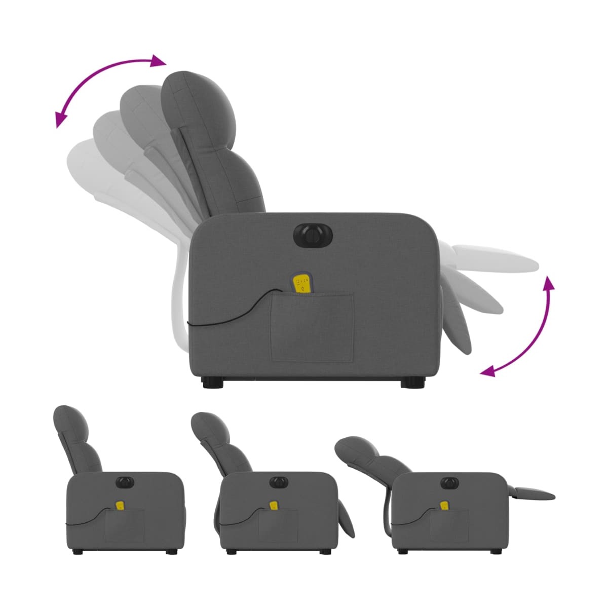 ¡Siéntate y déjate llevar en este cómodo sillón reclinable eléctrico! Función de elevación eléctrica: Este sillón reclinable para las personas mayores está equipado con un motor eléctrico para la función de elevación. Gracias a la función de elevación que empuja el sillón hacia arriba por completo, te puedes levantar fácilmente, sin tensiones en la espalda y las rodillas, con sólo pulsar el botón.Función reclinable eléctrica: Este sillón reclinable también está equipado con un motor eléctrico que ayuda a ajustar automáticamente el reposapiés y el respaldo a cualquier posición según tu comodidad con solo presionar el botón en el lateral del sillón. Esta característica permite una inclinación máxima de 135 grados. Además, el respaldo puede volver automáticamente a su lugar original con solo presionar un botón.Función de vibración: Los 6 puntos de masaje te harán disfrutar de un masaje mejor enfocado. Además, el mando incluido te permite elegir diferentes programas de masaje. La función de masaje funciona a través del conector USB que requiere una fuente de alimentación USB de 5 V certificada (no incluida).Cómodo asiento: El mullido asiento , el respaldo y los amplios reposabrazos cubiertos de tela proporcionan una sensación cómoda y acogedora, para que estés de maravilla mientras estás sentado. La tela posee un aspecto sencillo y limpio, y es transpirable y duradera.Práctico bolsillo lateral: Este sillón cuenta con un bolsillo lateral para guardar el mando a distancia o mantener tus cosas al alcance de la mano.