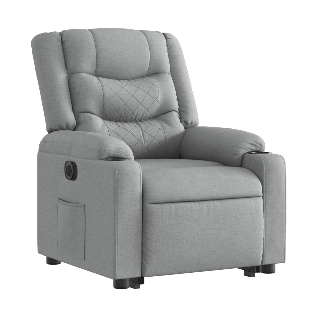 ¡Siéntate y déjate llevar en este comodísimo sillón reclinable y elevable eléctrico! Función de elevación eléctrica: Este sillón reclinable para las personas mayores está equipado con un motor eléctrico para la función de elevación. Gracias a la función de elevación que empuja el sillón hacia arriba por completo, te puedes levantar fácilmente, sin tensiones en la espalda y las rodillas, con sólo pulsar el botón.Función reclinable eléctrica: Este sillón reclinable también está equipado con un motor eléctrico que ayuda a ajustar el reposapiés y el respaldo de forma automática a cualquier posición que desees con solo presionar el botón en el lateral del sillón. Esta característica permite una inclinación máxima de 135 grados. Además, el respaldo vuelve automáticamente al lugar original con solo presionar el botón.Cómodo asiento: El mullido asiento, el respaldo y los amplios reposabrazos cubiertos de tela proporcionan una sensación cómoda y acogedora, para que estés de maravilla mientras estás sentado. La tela posee un aspecto sencillo y limpio, y es transpirable y duradera.Práctico bolsillo lateral: Este sillón tiene un bolsillo lateral para que guardes tus cosas al alcance de la mano.Estructura maciza y estable: La estructura, hecha de madera y metal, proporciona una estructura y una estabilidad fuertes. Este sillón reclinables es cómodo y duradero.