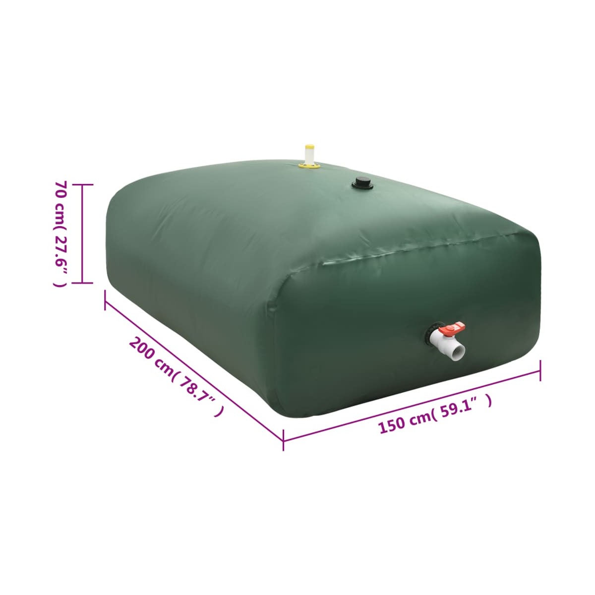 El depósito de agua plegable es ideal para almacenar agua no potable y sirve como un eficiente sistema de recogida de agua de lluvia. Duradero y resistente al desgarro: Este bidón de almacenamiento de agua está hecho de PVC, que es duradero y resistente al desgarro y se puede usar repetidamente. Ligero y plegable: El recipiente de almacenamiento de agua es plegable, ligero y flexible, por lo que puedes plegarlo y enrollarlo cuando no esté en uso, lo que facilita su transporte y almacenamiento. Fácil de usar: El depósito de agua de jardín está equipado con un grifo y un abrevadero que se puede conectar a una tubería de agua, lo que lo hace muy cómodo de usar.Múltiples usos: Puedes utilizar el depósito de agua para suministrar fácilmente agua y fertilizante a jardines, árboles y otros paisajes distantes. Además, también es adecuado para acampar, pescar y otras actividades al aire libre. Información útil: La temperatura del agua no debe ser demasiado alta y no es adecuado para almacenar agua potable en ella.