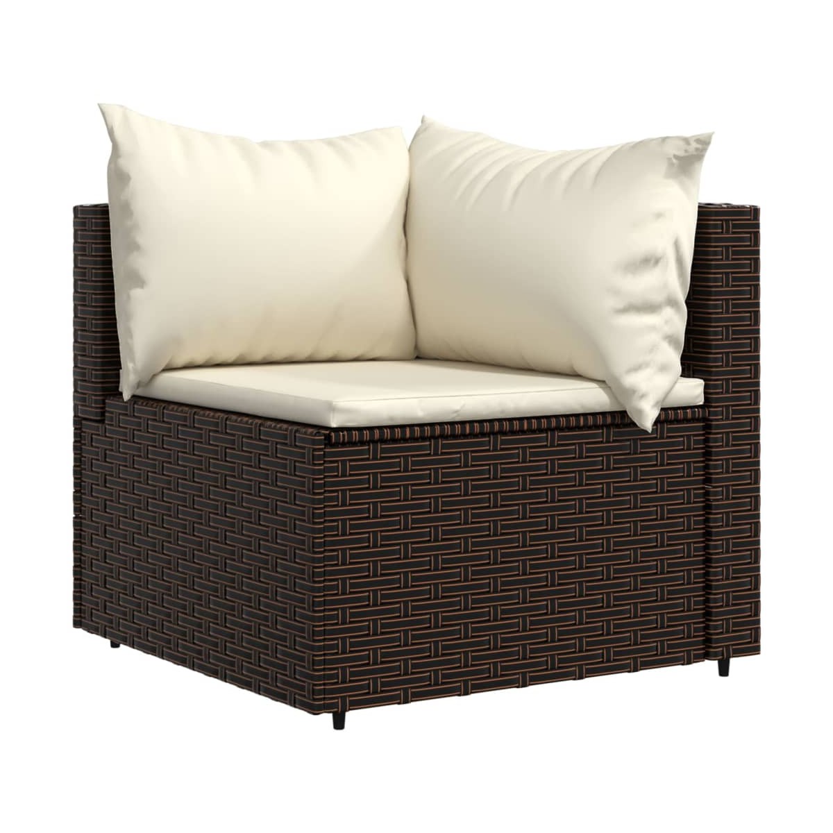 Estos modernos sofás esquineros de jardín, con un diseño elegante y contemporáneo, son adecuados para comer o relajarse en el jardín. Material resistente a la intemperie: El ratán PE, también conocido como ratán sintético, es resistente a la intemperie y fácil de limpiar. La parte exterior se mantiene hermosa durante mucho tiempo. Ofrece una gran calidad, comodidad y aspecto estético.Estructura robusta: La estructura de acero con recubrimiento en polvo hace que el sofá sea resistente y estable para usar a diario al aire libre.Diseño modular: El sofá de exterior es flexible y fácil de mover, por lo que puedes combinarlo con otros segmentos modulares de la tienda web para crear tus propias configuraciones personales de juegos de muebles para jardín.Cómodo asiento: El respaldo añade un plus de comodidad al sofá de jardín. Además, los cojines gruesos y acolchados proporcionan comodidad al asiento. Información útil:Para facilitar al máximo el montaje, cada producto se entrega con un manual. Nota:El producto está diseñado para usar únicamente al aire libre. No lo guarde dentro de casa.Para asegurarte de que tus muebles de exterior se mantengan hermosos, recomendamos protegerlos con una funda impermeable.