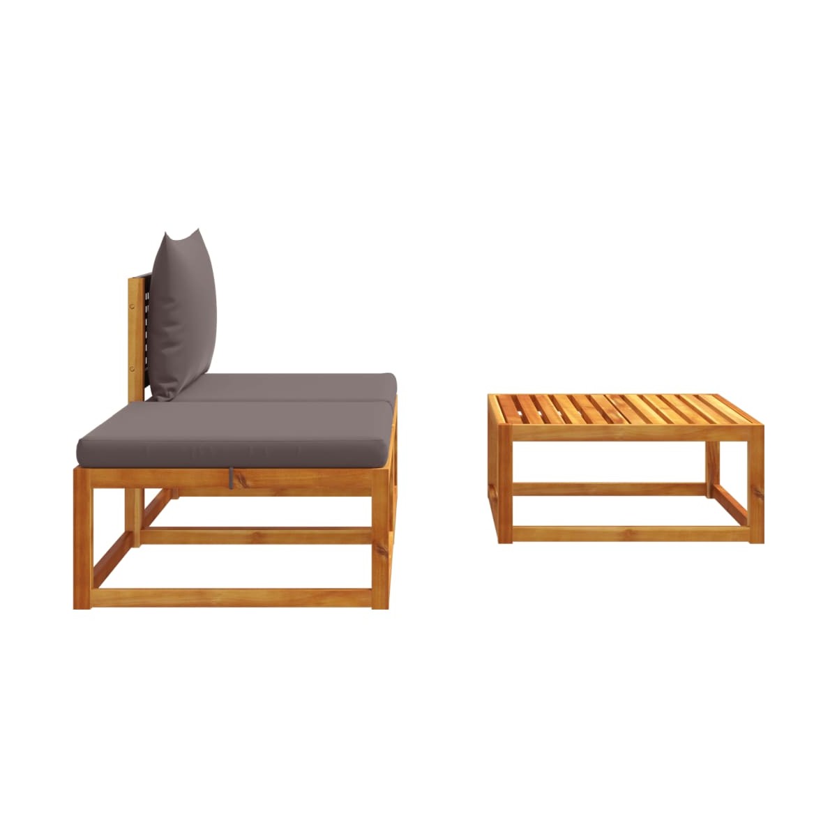 Este juego de sofás de jardín de madera con cojines será un gran aporte para tu jardín, terraza o patio para charlar con familiares y amigos o simplemente disfrutar del buen tiempo. Estructura robusta y estable: La madera maciza de acacia es conocida por su resistencia y durabilidad. Sus diversos colores y patrones de vetas únicos le dan una apariencia atractiva. Con buena estabilidad y resistencia a la intemperie, es ideal para fabricar muebles de interior y exterior.Experiencia de asiento cómoda: Estos muebles de exterior, completos con cojines acolchados gruesos, ofrecen una experiencia de asiento cómoda.Funda desenfundable y lavable: Estos cojines de asiento cuentan con fundas desenfundables para facilitar el lavado y mantenimiento.Superficie estable y fácil de limpiar: Esta mesa de jardín tiene una superficie de madera de acacia que es resistente, duradero y fácil de limpiar con un paño húmedo.Diseño modular: Este conjunto de muebles de exterior tiene un diseño modular, por lo que es completamente flexible y fácil de mover, para que puedas crear una disposición de muebles de exterior personalizada. Información útil:Para asegurarte de que tus muebles de exterior se mantengan hermosos, recomendamos protegerlos con una funda impermeable.