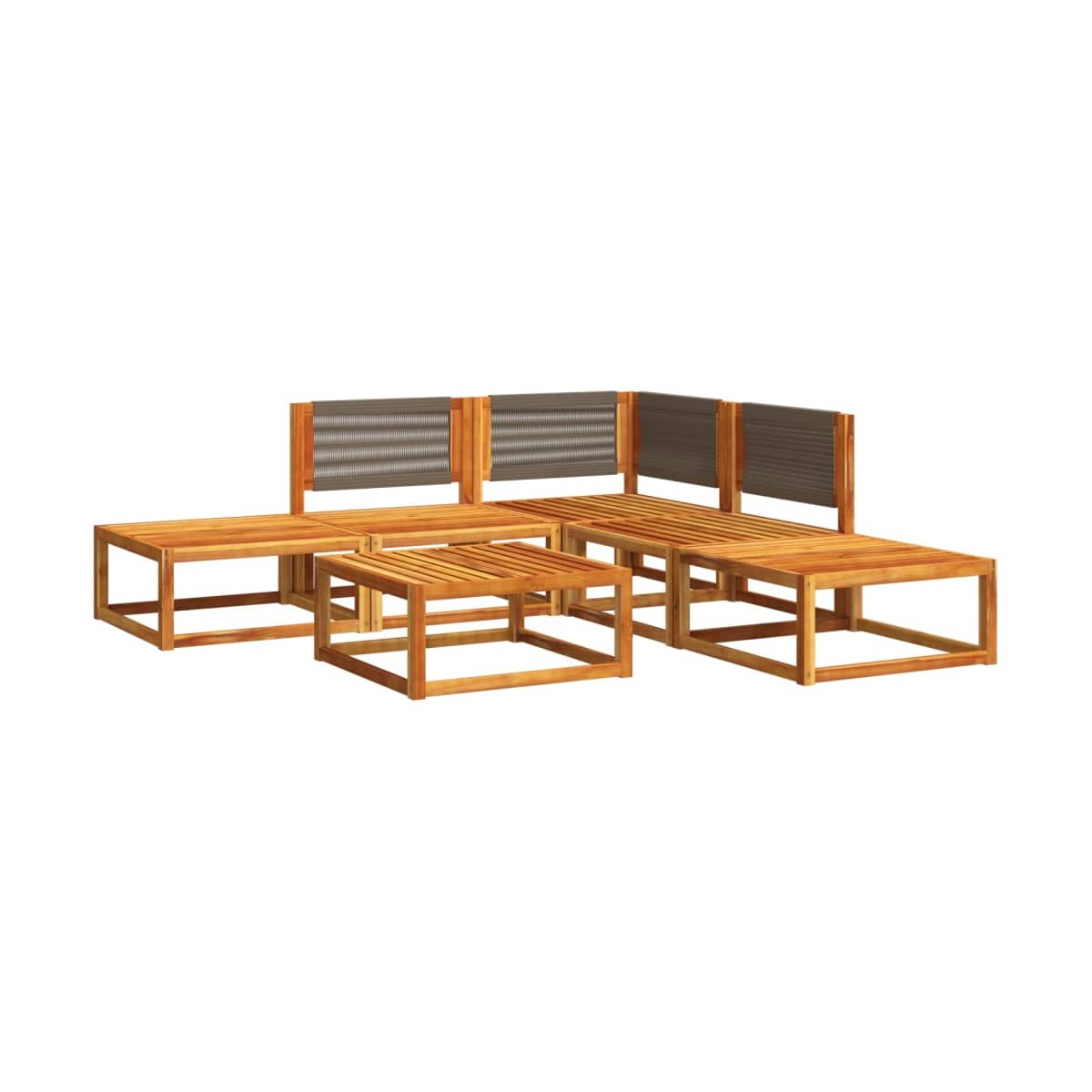 Este conjunto de sofás de jardín es el complemento perfecto para el jardín, terraza o patio, ya que proporciona un espacio confortable y acogedor para charlar con familiares y amigos o simplemente relajarte y disfrutar del aire libre. Estructura robusta y estable: La madera maciza de acacia es conocida por su resistencia y durabilidad. Sus diversos colores y patrones de vetas únicos le dan una apariencia atractiva. Con buena estabilidad y resistencia a la intemperie, es ideal para fabricar muebles de interior y exterior.Experiencia de asiento cómoda: Estos muebles de exterior, completos con cojines acolchados gruesos, ofrecen una experiencia de asiento cómoda.Funda desenfundable y lavable: Estos cojines de asiento cuentan con fundas desenfundables para facilitar el lavado y mantenimiento.Bien ventilado y prevención de la acumulación de agua: El diseño de listones promueve un flujo de aire óptimo y evita eficazmente la acumulación de agua, lo que garantiza un mobiliario de jardín seco y cómodo.Diseño modular: Este conjunto de muebles de exterior tiene un diseño modular, por lo que es completamente flexible y fácil de mover, para que puedas crear una disposición de muebles de exterior personalizada. Información útil:Para asegurarte de que tus muebles de exterior se mantengan hermosos, recomendamos protegerlos con una funda impermeable.