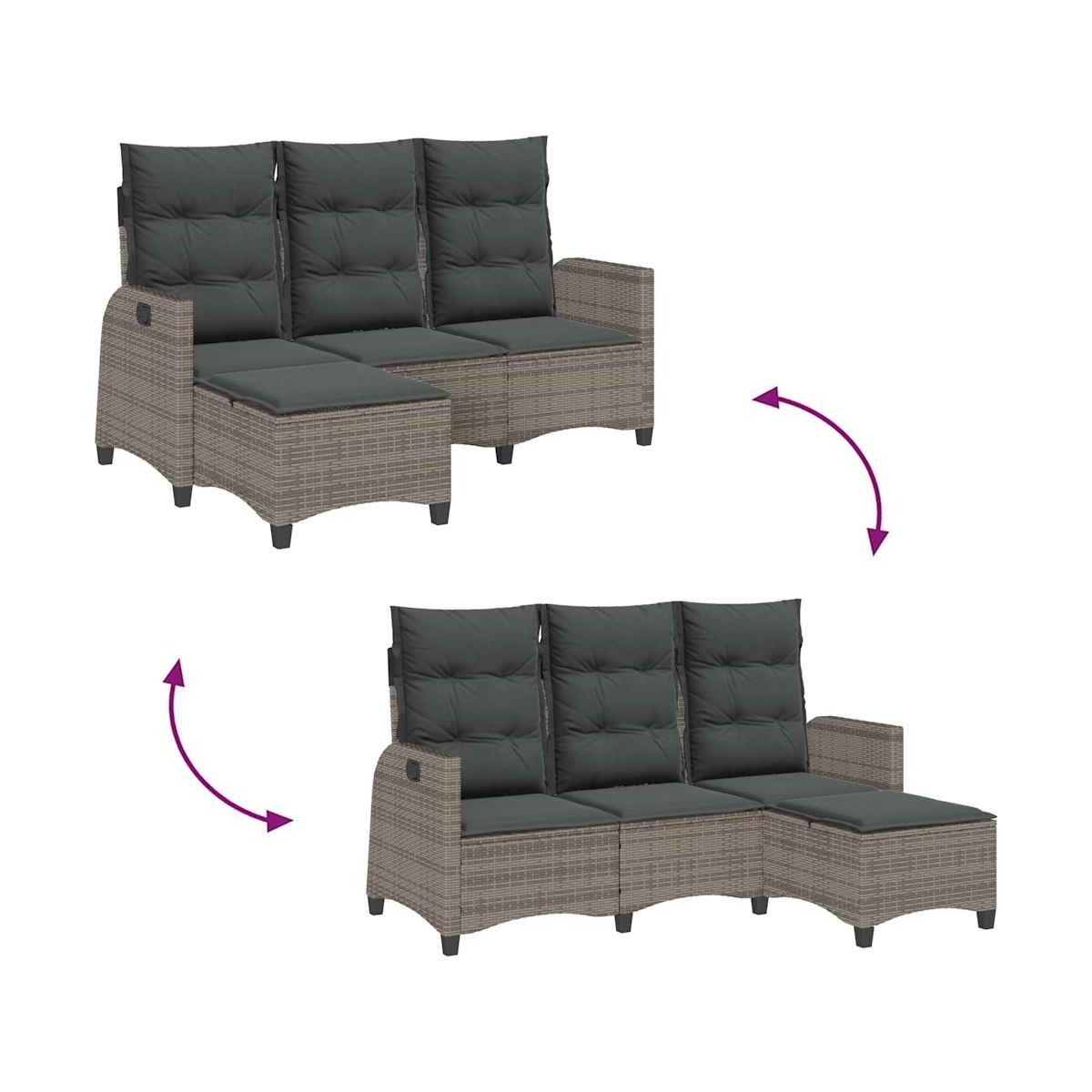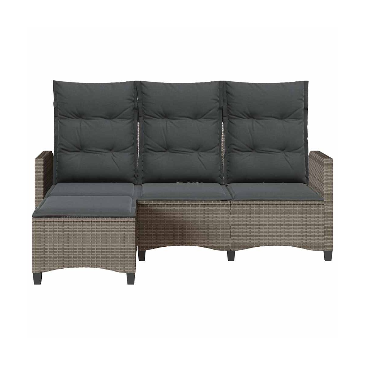 ¡Relájate y disfruta del aire libre en este cómodo sofá de jardín reclinable! Material duradero: El ratán sintético, también conocido como ratán sintético, es un material sintético resistente y de bajo mantenimiento que se parece al ratán natural. Es ligero, fácil de limpiar y se usa comúnmente para muebles de exterior debido a su durabilidad y propiedades resistentes a la intemperie.Respaldo ajustable: Este mueble de exterior tiene un asa en cada asiento. Puedes ajustar el respaldo a cualquier posición tirando del asa y devolverlo rápidamente a su posición original.Experiencia de asiento cómoda: Estos muebles de exterior, completos con cojines acolchados gruesos, ofrecen una experiencia de asiento cómoda.Funda extraíble y lavable: Estos cojines de asiento cuentan con fundas desenfundables para facilitar el lavado y mantenimiento. Los cojines del respaldo tienen una solapa en la parte posterior para facilitar la fijación a los respaldos.Estructura robusta y estable: La estructura de acero con recubrimiento en polvo garantiza que el mueble de jardín sea resistente y estable para usarlo a diario al aire libre. Información útil:Para asegurarte de que tus muebles de exterior se mantengan hermosos, recomendamos protegerlos con una funda impermeable.