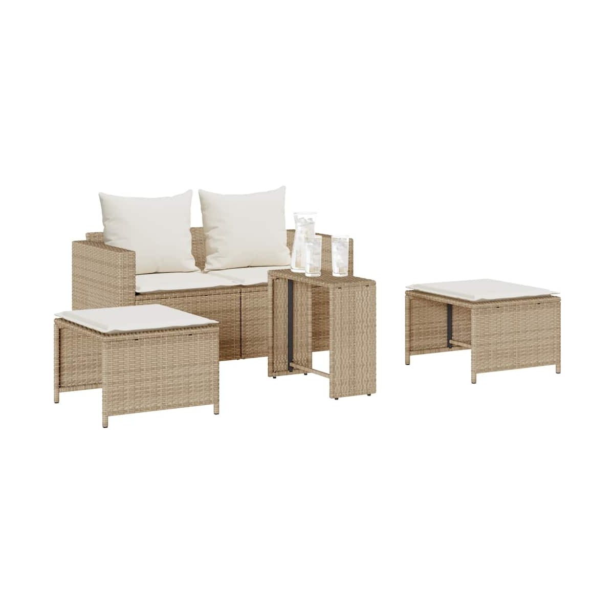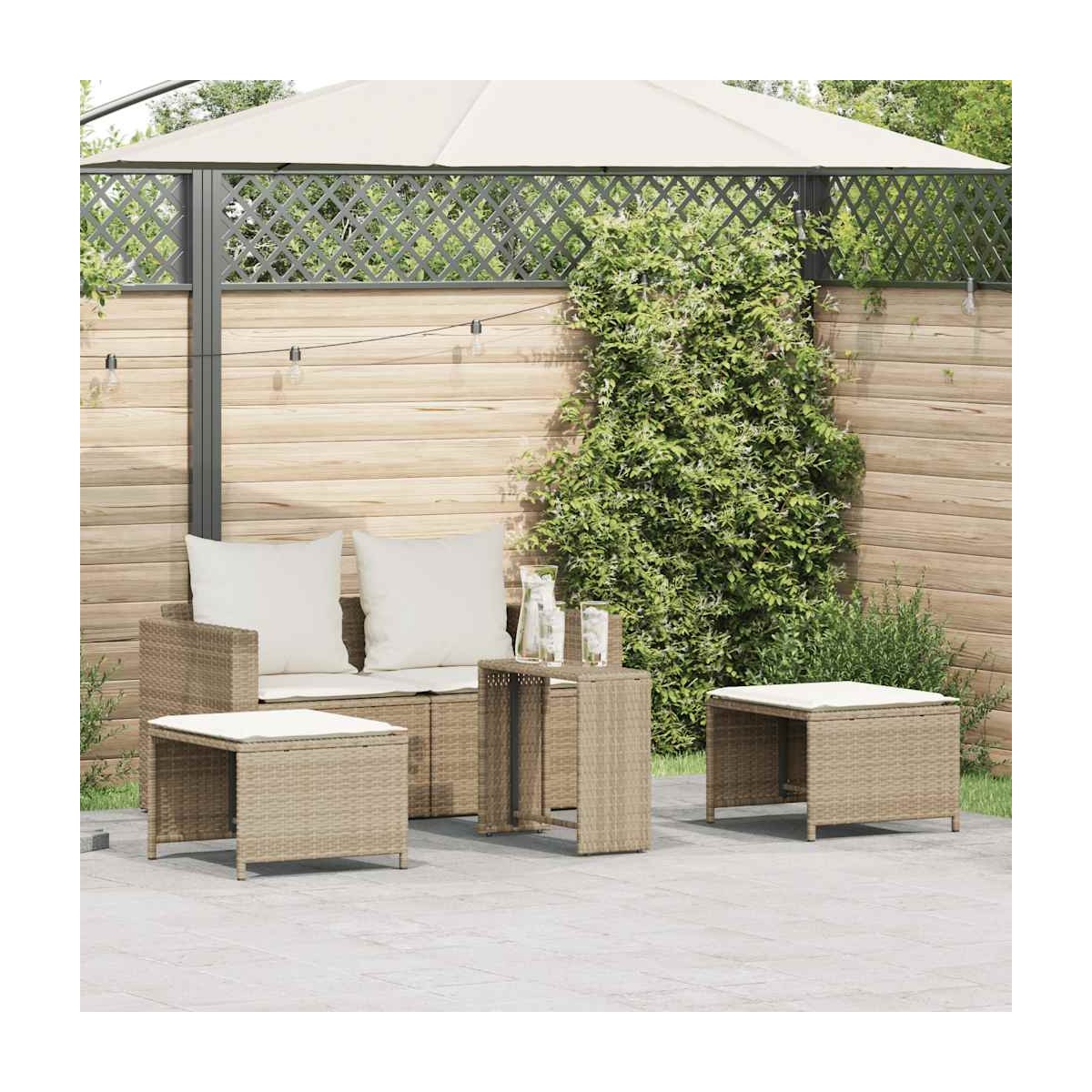 Este conjunto de sofás de jardín es el complemento perfecto para el jardín, terraza o patio, ya que proporciona un espacio confortable y acogedor para charlar con familiares y amigos o simplemente relajarte y disfrutar del aire libre. Material duradero: El ratán sintético, también conocido como ratán sintético, es un material sintético resistente y de bajo mantenimiento que se parece al ratán natural. Es ligero, fácil de limpiar y se usa comúnmente para muebles de exterior debido a su durabilidad y propiedades resistentes a la intemperie.Experiencia de asiento cómoda: Estos muebles de exterior, completos con cojines acolchados gruesos, ofrecen una experiencia de asiento cómoda.Funda desenfundable y lavable: Estos cojines de asiento cuentan con fundas desenfundables para facilitar el lavado y mantenimiento.Apilable para ahorrar espacio: este juego de sofás para exteriores se puede apilar cómodamente en una estructura rectangular compacta, lo que hace que sea fácil de almacenar e ideal para maximizar el espacio cuando no está en uso.Diseño modular: Este conjunto de muebles de exterior tiene un diseño modular, por lo que es completamente flexible y fácil de mover, para que puedas crear una disposición de muebles de exterior personalizada. Información útil:Para asegurarte de que tus muebles de exterior se mantengan hermosos, recomendamos protegerlos con una funda impermeable.