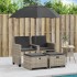 Este sofá de jardín con sombrilla y reposapiés es el complemento perfecto para el jardín, terraza o patio, ya que proporciona un espacio confortable y acogedor para charlar con familiares y amigos o simplemente relajarte y disfrutar del aire libre. Material duradero: El ratán sintético, también conocido como ratán sintético, es un material sintético resistente y de bajo mantenimiento que se parece al ratán natural. Es ligero, fácil de limpiar y se usa comúnmente para muebles de exterior debido a su durabilidad y propiedades resistentes a la intemperie.Práctica sombrilla: El sofá de jardín incorpora una sombrilla con mecanismo de inclinación, que permite ajustar fácilmente el toldo para obtener una sombra y protección óptimas contra el sol.Funda extraíble y lavable: Estos cojines cuentan con fundas extraíbles para facilitar su lavado y mantenimiento.Almacenamiento compacto: Estos taburetes pueden colocarse debajo de los asientos para ahorrar espacio.Estructura robusta y estable: La estructura de acero con recubrimiento en polvo garantiza que el mueble de jardín sea resistente y estable para usarlo a diario al aire libre. Información útil:Para asegurarte de que tus muebles de exterior se mantengan hermosos, recomendamos protegerlos con una funda impermeable.