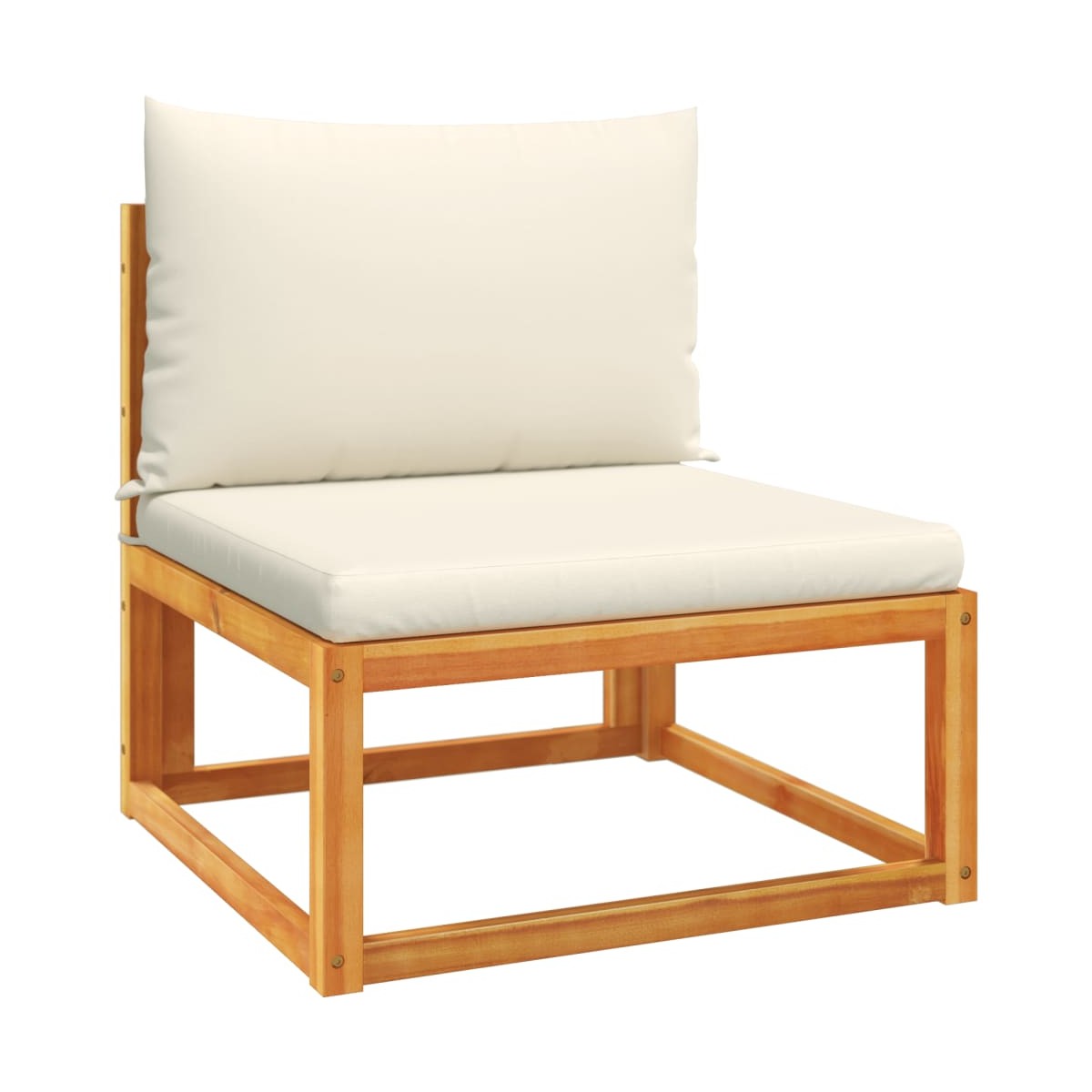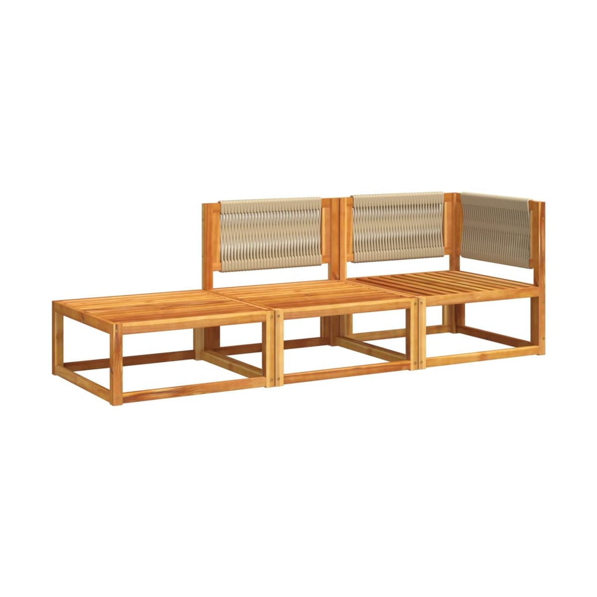 Este conjunto de sofás de jardín es el complemento perfecto para el jardín, terraza o patio, ya que proporciona un espacio confortable y acogedor para charlar con familiares y amigos o simplemente relajarte y disfrutar del aire libre. Estructura robusta y estable: La madera maciza de acacia es conocida por su resistencia y durabilidad. Sus diversos colores y patrones de vetas únicos le dan una apariencia atractiva. Con buena estabilidad y resistencia a la intemperie, es ideal para fabricar muebles de interior y exterior.Experiencia de asiento cómoda: Estos muebles de exterior, completos con cojines acolchados gruesos, ofrecen una experiencia de asiento cómoda.Funda desenfundable y lavable: Estos cojines de asiento cuentan con fundas desenfundables para facilitar el lavado y mantenimiento.Bien ventilado y prevención de la acumulación de agua: El diseño de listones promueve un flujo de aire óptimo y evita eficazmente la acumulación de agua, lo que garantiza un mobiliario de jardín seco y cómodo.Diseño modular: Este conjunto de muebles de exterior tiene un diseño modular, por lo que es completamente flexible y fácil de mover, para que puedas crear una disposición de muebles de exterior personalizada. Información útil:Para asegurarte de que tus muebles de exterior se mantengan hermosos, recomendamos protegerlos con una funda impermeable.