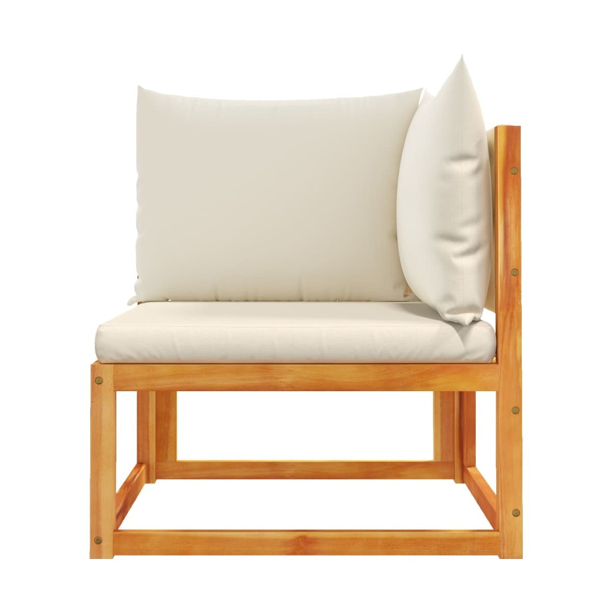 Este sofá de madera con cojines será un buen aporte para el jardín, la terraza o el patio, para charlar con familiares y amigos o simplemente disfrutar del buen tiempo. Estructura robusta y estable: La madera maciza de acacia es conocida por su resistencia y durabilidad. Sus diversos colores y patrones de vetas únicos le dan una apariencia atractiva. Con buena estabilidad y resistencia a la intemperie, es ideal para fabricar muebles de interior y exterior.Experiencia de asiento cómoda: Estos muebles de exterior, completos con cojines acolchados gruesos, ofrecen una experiencia de asiento cómoda.Funda extraíble y lavable: Este cojín del asiento cuenta con una funda extraíble para facilitar el lavado y mantenimiento.Diseño modular: Estos muebles de exterior tienen un diseño modular, por lo que son completamente flexible y fácil de mover, para que puedas crear una disposición de muebles de exterior personalizada. Información útil:Para asegurarte de que tus muebles de exterior se mantengan hermosos, recomendamos protegerlos con una funda impermeable.