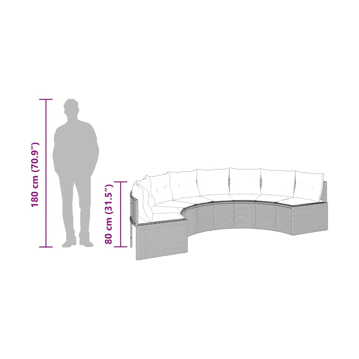 Este sofá de jardín de forma semicircular es el complemento perfecto para tu jardín, terraza o patio, ya que proporciona un espacio cómodo y acogedor para charlar con familiares y amigos o simplemente relajarse y disfrutar del aire libre. Material duradero: El ratán PE, también conocido como ratán sintético, es un material sintético resistente y de bajo mantenimiento que se parece al ratán natural. Es ligero, fácil de limpiar y se usa comúnmente para muebles de exterior debido a su durabilidad y propiedades resistentes a la intemperie.Experiencia de asiento cómoda: Estos muebles de exterior, completos con cojines acolchados gruesos, ofrecen una experiencia de asiento cómoda.Funda desenfundable y lavable: Estos cojines de asiento cuentan con fundas desenfundables para facilitar el lavado y mantenimiento.Estructura robusta y estable: La estructura de acero con recubrimiento en polvo garantiza que el mueble de jardín sea resistente y estable para usarlo a diario al aire libre. Información útil:Para asegurarte de que tus muebles de exterior se mantengan hermosos, recomendamos protegerlos con una funda impermeable.
