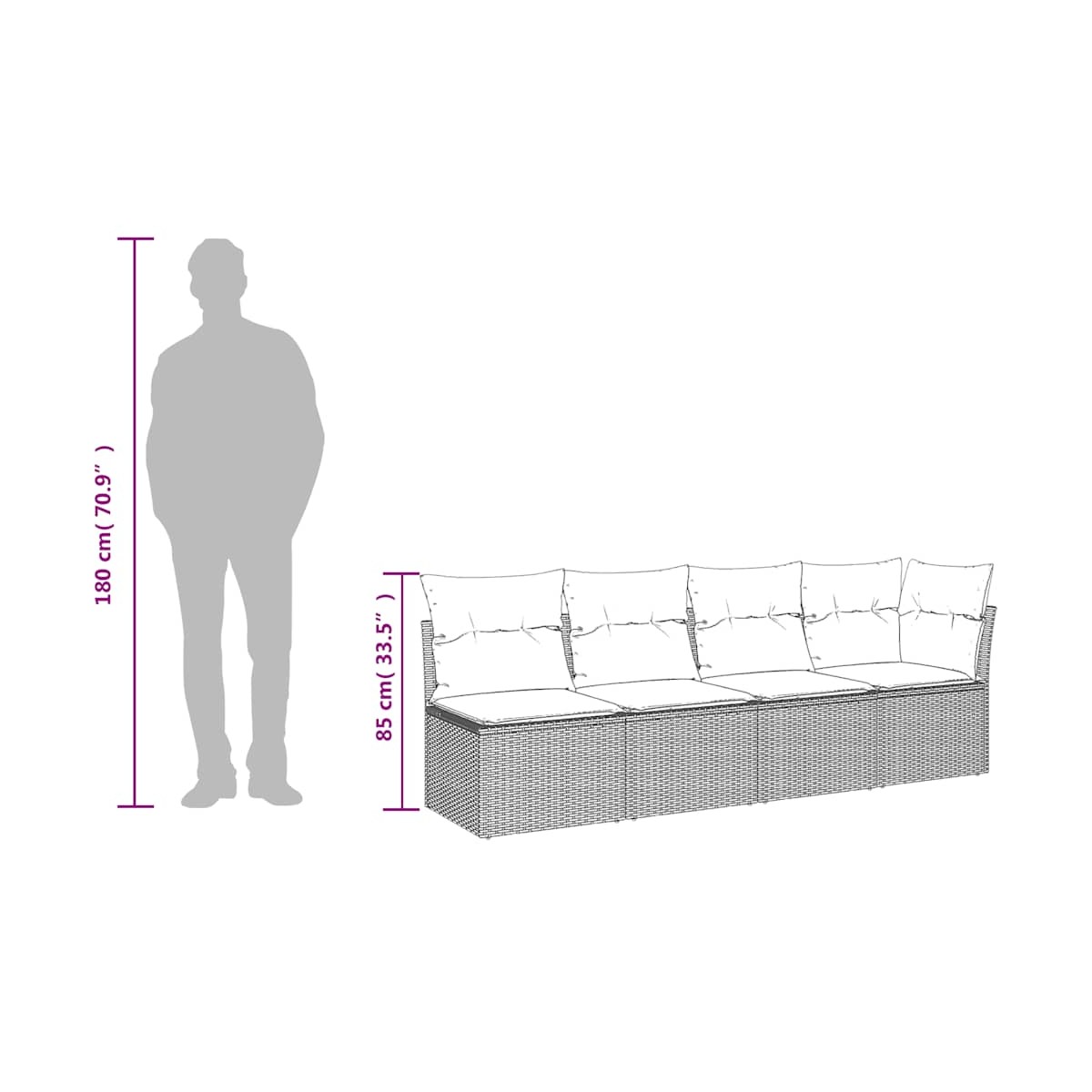 ¡Relájate y disfruta del aire libre en este cómodo sofá de jardín de 4 plazas! Material duradero: El ratán de PE, también conocido como ratán sintético, es un material sintético resistente y de bajo mantenimiento que se parece al ratán natural. Es ligero, fácil de limpiar y se usa comúnmente para muebles de exterior debido a su durabilidad y propiedades resistentes a la intemperie.Experiencia de asiento cómoda: Estos muebles de exterior, completos con cojines acolchados gruesos, ofrecen una experiencia de asiento cómoda.Funda desenfundable y lavable: Estos cojines de asiento cuentan con fundas desenfundables para facilitar el lavado y mantenimiento.Diseño modular: Este conjunto de muebles de exterior tiene un diseño modular, por lo que es completamente flexible y fácil de mover, para que puedas crear una disposición de muebles de exterior personalizada. Información útil:Para asegurarte de que tus muebles de exterior se mantengan hermosos, recomendamos protegerlos con una funda impermeable.