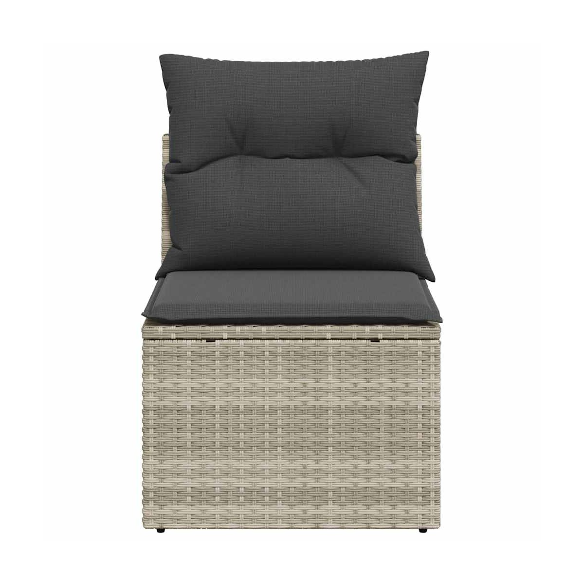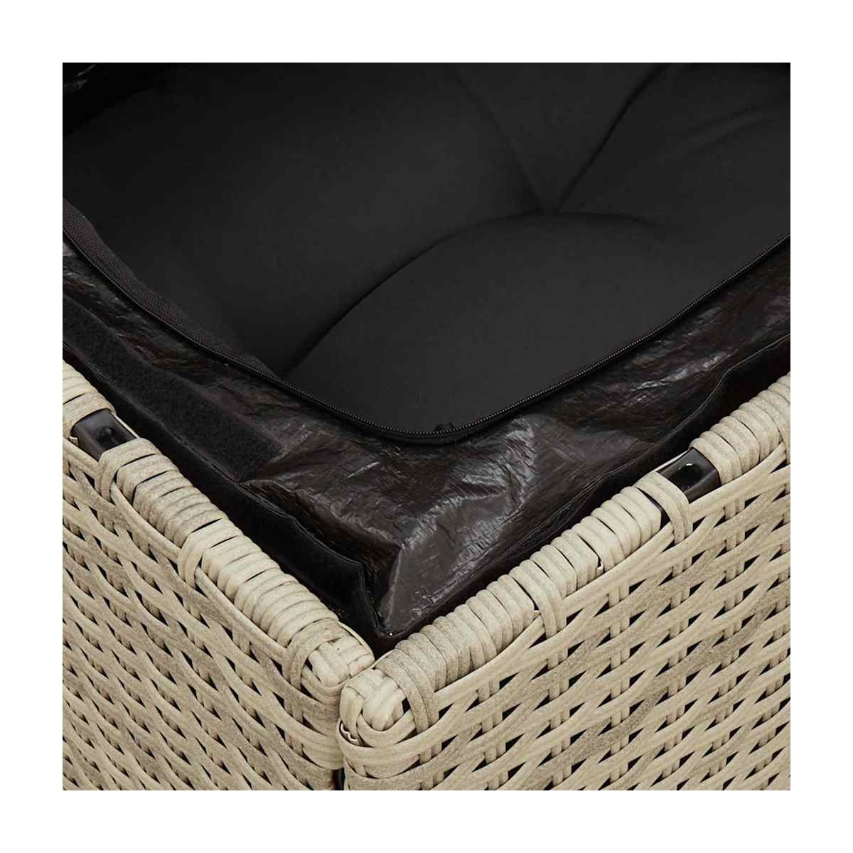 ¡Relájate y disfruta del aire libre en esta cómoda silla de jardín! Ratán PE: El ratán PE, también conocido como ratán sintético, es un material sintético resistente y de bajo mantenimiento que se parece al ratán natural. Es ligero, fácil de limpiar y se usa comúnmente para muebles de exterior debido a su durabilidad y propiedades resistentes a la intemperie.Función de almacenamiento con bolsa resistente al agua: Cada asiento de jardín cuenta con un espacio de almacenamiento debajo del asiento, completo con una bolsa resistente al agua para guardar cojines, juguetes y otros artículos. La bolsa interior tiene una cubierta superior y se puede sujetar de forma segura al asiento con cierres de gancho y bucle para mayor estabilidad.Experiencia de asiento cómoda: Estos muebles de exterior, completos con cojines acolchados gruesos, ofrecen una experiencia de asiento cómoda.Funda extraíble y lavable: El cojín de asiento cuenta con una funda desenfundable para facilitar el lavado y mantenimiento.Estructura robusta y estable: La estructura de acero con recubrimiento en polvo garantiza que el mueble de jardín sea resistente y estable para usarlo a diario al aire libre.Diseño modular: Estos muebles de exterior tienen un diseño modular, por lo que son completamente flexible y fácil de mover, para que puedas crear una disposición de muebles de exterior personalizada. Información útil:Para asegurarte de que tus muebles de exterior se mantengan hermosos, recomendamos protegerlos con una funda impermeable.