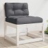 Este sofá de madera con cojines será un buen aporte para el jardín, la terraza o el patio, para charlar con familiares y amigos o simplemente disfrutar del buen tiempo. Madera maciza de pino: La madera maciza de pino es un bonito material natural. La madera de pino tiene vetas rectas y los nudos dan al material su característico aspecto rústico. Hecho de madera maciza de pino, este sofá sin reposabrazos es duradero y estable.Asiento cómodo: El respaldo y los cojines hacen que el sofá de jardín resulte más cómodo.Diseño de listones: El diseño de listones del sofá de exterior evita que el agua se acumule de forma eficaz, para que el asiento permanezca seco y no se pudra.Diseño modular: Este sofá tiene un diseño modular que lo hace completamente flexible y fácil de mover para adaptarlo a cualquier entorno. ¡Puedes combinarlo con otros segmentos modulares disponibles en el menú desplegable para crear tus propias configuraciones personales de muebles de jardín! Información útil:Para asegurarte de que tus muebles de exterior se mantengan hermosos, recomendamos protegerlos con una funda impermeable.
