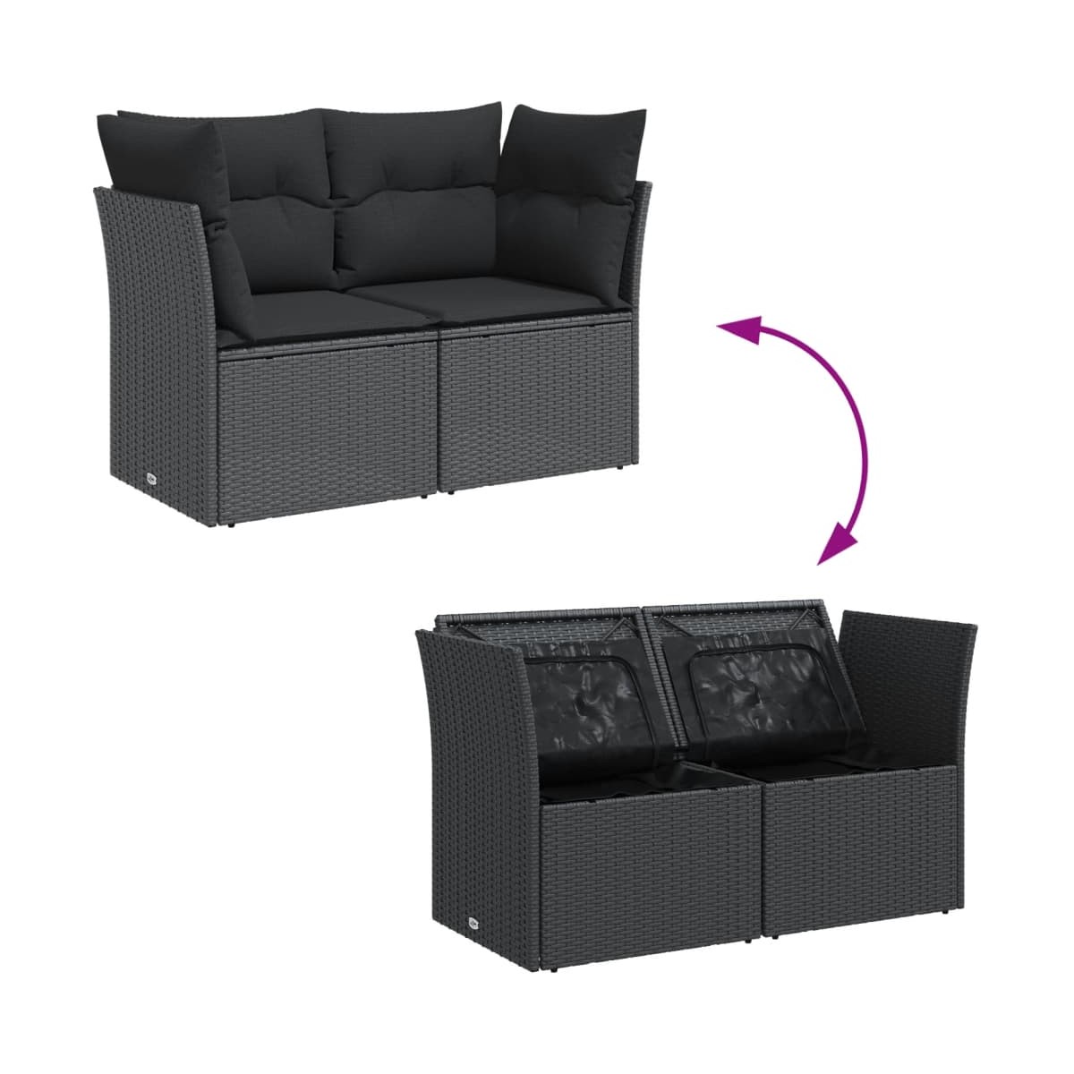 ¡Relájate y disfruta del aire libre en este cómodo sofá de jardín de 2 plazas! Material duradero: El ratán de PE, también conocido como ratán sintético, es un material sintético resistente y de bajo mantenimiento que se parece al ratán natural. Es ligero, fácil de limpiar y se usa comúnmente para muebles de exterior debido a su durabilidad y propiedades resistentes a la intemperie.Función de almacenamiento con bolsa resistente al agua: Cada asiento de jardín cuenta con un espacio de almacenamiento debajo del asiento, completo con una bolsa resistente al agua para guardar cojines, juguetes y otros artículos. Las bolsas interiores tienen una cubierta superior y se pueden sujetar de forma segura a los asientos con los cierres de gancho y bucle para mayor estabilidad.Experiencia de asiento cómoda: Estos muebles de exterior, completos con cojines acolchados gruesos, ofrecen una experiencia de asiento cómoda.Funda desenfundable y lavable: Estos cojines de asiento cuentan con fundas desenfundables para facilitar el lavado y mantenimiento.Diseño modular: Este conjunto de muebles de exterior tiene un diseño modular, por lo que es completamente flexible y fácil de mover, para que puedas crear una disposición de muebles de exterior personalizada. Información útil:Para asegurarte de que tus muebles de exterior se mantengan hermosos, recomendamos protegerlos con una funda impermeable.