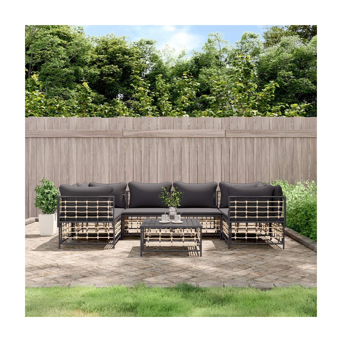 ¡Disfruta de un agradable café en el espacio al aire libre de la casa con este juego de muebles para jardín! Es un aporte perfecto para el jardín y la terraza, y crea además una impresión duradera. Material resistente a la intemperie: El ratán sintético es resistente a la intemperie y fácil de limpiar. La parte exterior se mantiene hermosa durante mucho tiempo. Es más económico que otros materiales, además de ofrecer una gran calidad, comodidad y aspecto estético.Estructura robusta y estable: La estructura de acero del conjunto de muebles garantiza su solidez y estabilidad.Cómodo asiento: El respaldo aporta un plus de comodidad al juego de muebles. Además, los cojines gruesos y acolchados proporcionan comodidad al asiento.Tablero robusto: El robusto tablero de la mesa de centro es perfecto para colocar comidas, bebidas, jarrones, fruteros u otros objetos decorativos.Diseño modular: El juego de muebles de jardín es flexible y fácil de mover, por lo que puedes combinarlo con otros segmentos modulares de la tienda web para crear tus propias configuraciones personales de juegos de muebles para jardín. Nota:Para asegurarte de que tus muebles de exterior se mantengan hermosos, recomendamos protegerlos con una funda impermeable.