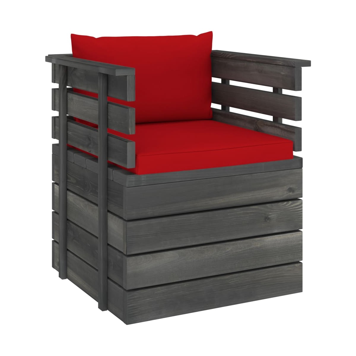 Este moderno sillón de palets de jardín con cojines es una excelente opción para que te relajes y disfrutes del buen tiempo, eches una siesta o charles con tu familia o amigos. Con un diseño de palets atemporal, este sofá de madera agrega un toque de encanto rústico a tu patio, jardín o salón. El sofá de jardín está hecho de madera maciza de pino, lo que lo hace duradero y estable. Este sofá tiene una construcción maciza y requiere poco mantenimiento. Gracias a la tapicería 100% de poliéster y al grueso acolchado, los cojines para palés son suaves y proporcionan el máximo confort. Es ideal para noches de cine en familia, jugar a videojuegos y disfrutar del buen tiempo en el porche. Este asiento de patio también tiene un diseño modular, lo que lo hace completamente flexible y fácil de mover para adaptarse a cualquier entorno. ¡Puedes combinarlo con otros segmentos modulares para crear un salón de jardín a tu gusto! Ten en cuenta que la madera es un producto natural y puede presentar ligeras imperfecciones.