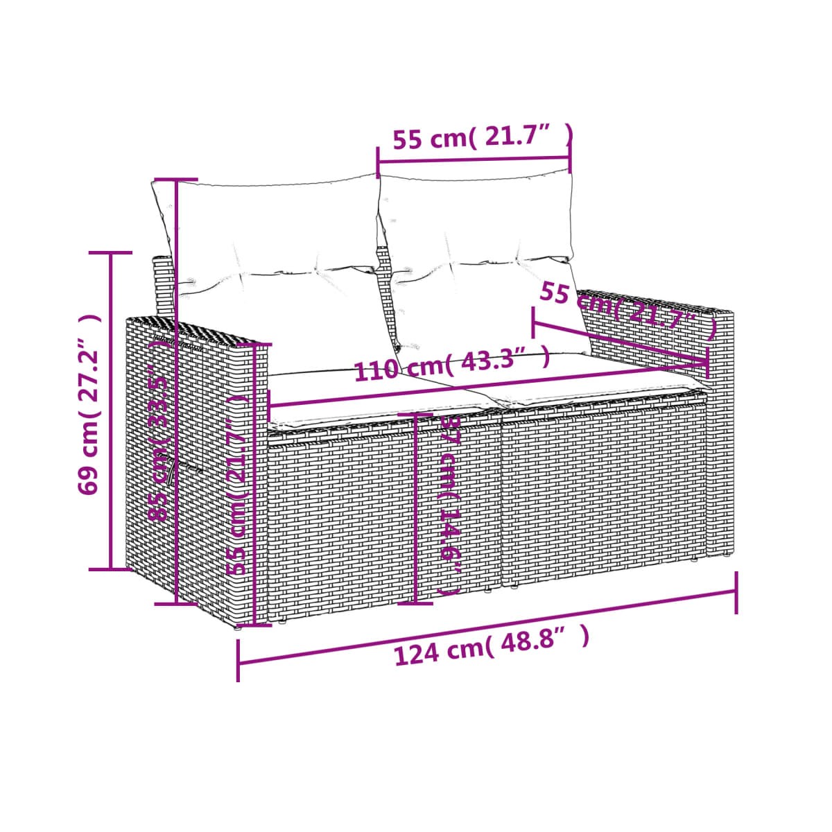 Este conjunto de sofás de jardín es el complemento perfecto para el jardín, terraza o patio, ya que proporciona un espacio confortable y acogedor para charlar con familiares y amigos o simplemente relajarte y disfrutar del aire libre. Material duradero: El ratán PE, también conocido como ratán sintético, es un material sintético resistente y de bajo mantenimiento que se parece al ratán natural. Es ligero, fácil de limpiar y se usa comúnmente para muebles de exterior debido a su durabilidad y propiedades resistentes a la intemperie.Cómoda mesa auxiliar: Este mueble de exterior cuenta con una mesa auxiliar plegable con un resorte de gas en los reposabrazos, lo que proporciona un lugar conveniente para mantener tus elementos esenciales al alcance de la mano.Superficie estable y fácil de limpiar: Esta mesa de jardín tiene una superficie de madera de acacia que es resistente, duradero y fácil de limpiar con un paño húmedo.Funda desenfundable y lavable: Estos cojines de asiento cuentan con fundas desenfundables para facilitar el lavado y mantenimiento.Diseño modular: Este conjunto de muebles de exterior tiene un diseño modular, por lo que es completamente flexible y fácil de mover, para que puedas crear una disposición de muebles de exterior personalizada. Información útil:Para asegurarte de que tus muebles de exterior se mantengan hermosos, recomendamos protegerlos con una funda impermeable.