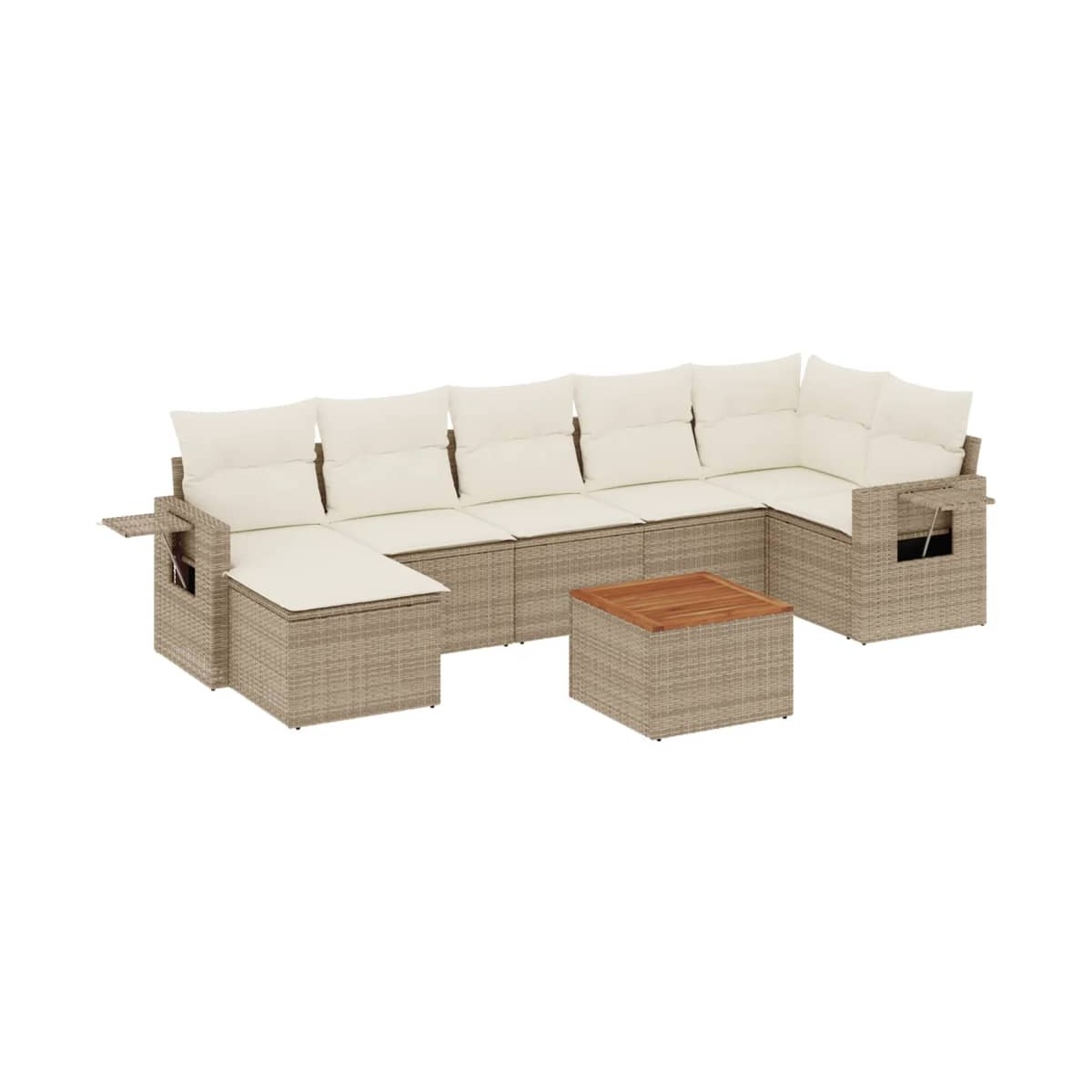 Este conjunto de sofás de jardín es el complemento perfecto para el jardín, terraza o patio, ya que proporciona un espacio confortable y acogedor para charlar con familiares y amigos o simplemente relajarte y disfrutar del aire libre. Material duradero: El ratán PE, también conocido como ratán sintético, es un material sintético resistente y de bajo mantenimiento que se parece al ratán natural. Es ligero, fácil de limpiar y se usa comúnmente para muebles de exterior debido a su durabilidad y propiedades resistentes a la intemperie.Cómoda mesa auxiliar: Este mueble de exterior cuenta con una mesa auxiliar plegable con un resorte de gas en los reposabrazos, lo que proporciona un lugar conveniente para mantener tus elementos esenciales al alcance de la mano.Superficie estable y fácil de limpiar: Esta mesa de jardín tiene una superficie de madera de acacia que es resistente, duradero y fácil de limpiar con un paño húmedo.Funda desenfundable y lavable: Estos cojines de asiento cuentan con fundas desenfundables para facilitar el lavado y mantenimiento.Diseño modular: Este conjunto de muebles de exterior tiene un diseño modular, por lo que es completamente flexible y fácil de mover, para que puedas crear una disposición de muebles de exterior personalizada. Información útil:Para asegurarte de que tus muebles de exterior se mantengan hermosos, recomendamos protegerlos con una funda impermeable.