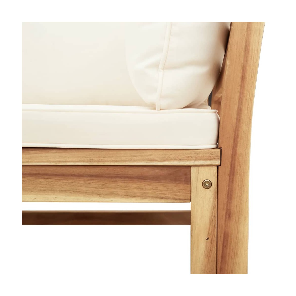 Este juego de salón de jardín de madera con cojines tiene un diseño elegante y es una excelente opción para relajarse y disfrutar en el jardín o patio. Material de primera calidad: La madera maciza de acacia es un bonito material natural. La madera de acacia es una madera dura tropical, densa, robusta y duradera.Experiencia de asiento cómoda: El respaldo y los cojines acolchados hacen que el juego de sofás de jardín sea más cómodo para sentarse.Diseño de listones: El diseño de listones del juego de salón de madera evita eficazmente que el agua se acumule, asegurando que el asiento permanezca seco y libre de posible putrefacción.Diseño modular: Este conjunto de muebles de exterior tiene un diseño modular, por lo que es completamente flexible y fácil de mover, para que puedas crear una disposición de muebles de exterior personalizada. Información útil:Para asegurarte de que tus muebles de exterior se mantengan hermosos, recomendamos protegerlos con una funda impermeable.