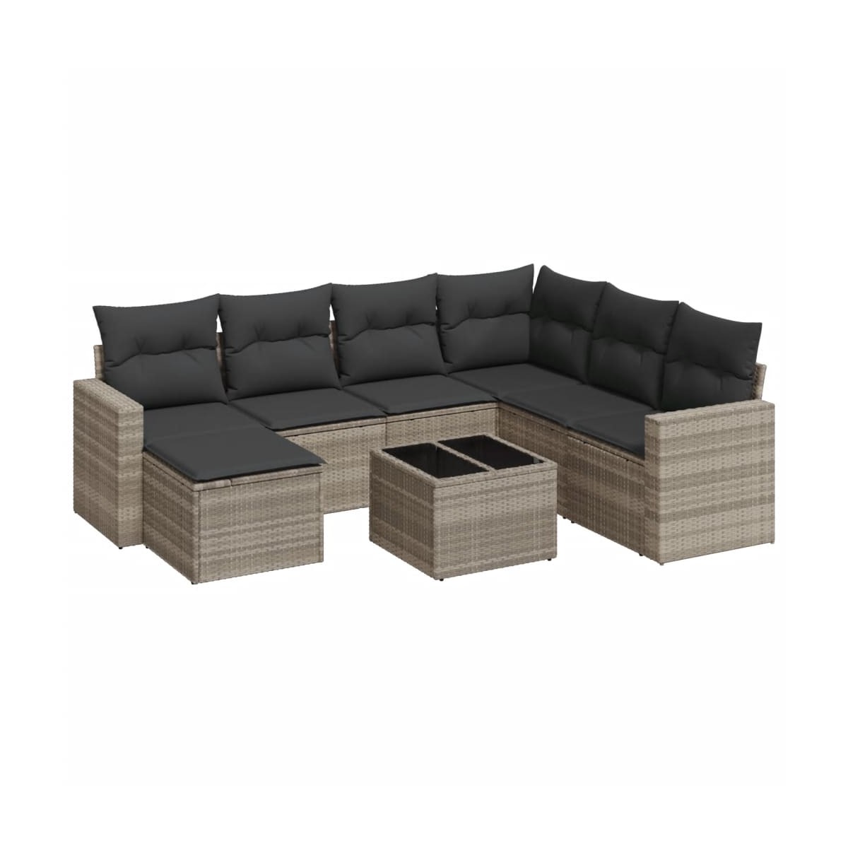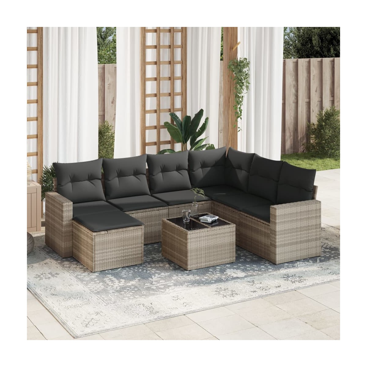 Este conjunto de sofás de jardín es el complemento perfecto para el jardín, terraza o patio, ya que proporciona un espacio confortable y acogedor para charlar con familiares y amigos o simplemente relajarte y disfrutar del aire libre. Material duradero: El ratán de PE, también conocido como ratán sintético, es un material sintético resistente y de bajo mantenimiento que se parece al ratán natural. Es ligero, fácil de limpiar y se usa comúnmente para muebles de exterior debido a su durabilidad y propiedades resistentes a la intemperie.Función de almacenaje con bolsa impermeable: Cada asiento de jardín cuenta con espacio de almacenamiento debajo del asiento, completo con una bolsa resistente al agua para guardar cojines, juguetes y otros artículos. Las bolsas interiores tienen una cubierta superior y pueden fijarse firmemente a los asientos con cierres adhesivos para mayor estabilidad.Superficie de vidrio: La superficie de la mesa de exterior es de vidrio templado resistente y duradero, por lo que es fácil de limpiar con un paño húmedo y añade un toque de elegancia a tu espacio exterior.Funda desenfundable y lavable: Estos cojines de asiento cuentan con fundas desenfundables para facilitar el lavado y mantenimiento.Diseño modular: Este conjunto de muebles de exterior tiene un diseño modular, por lo que es completamente flexible y fácil de mover, para que puedas crear una disposición de muebles de exterior personalizada. Información útil:Para asegurarte de que tus muebles de exterior se mantengan hermosos, recomendamos protegerlos con una funda impermeable.
