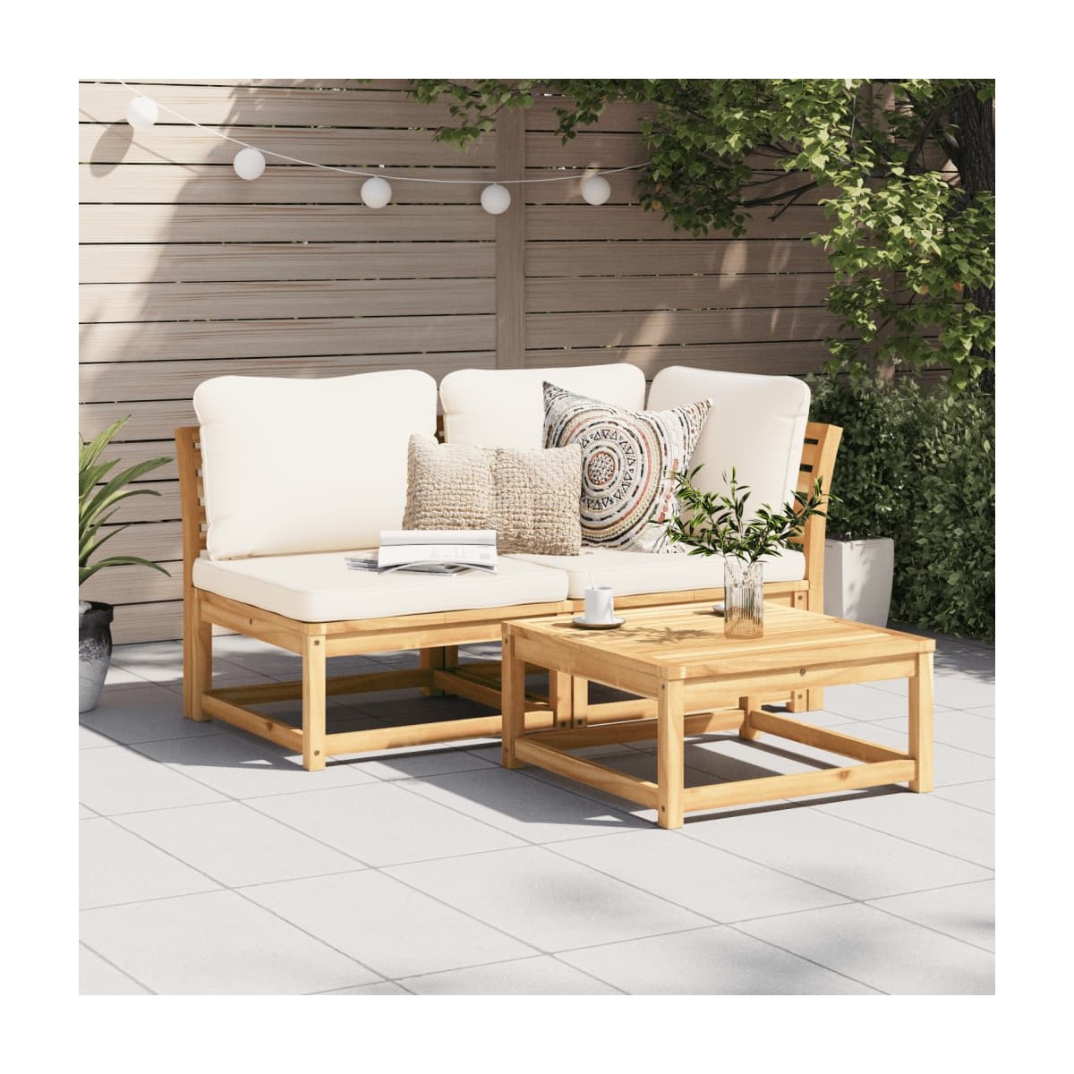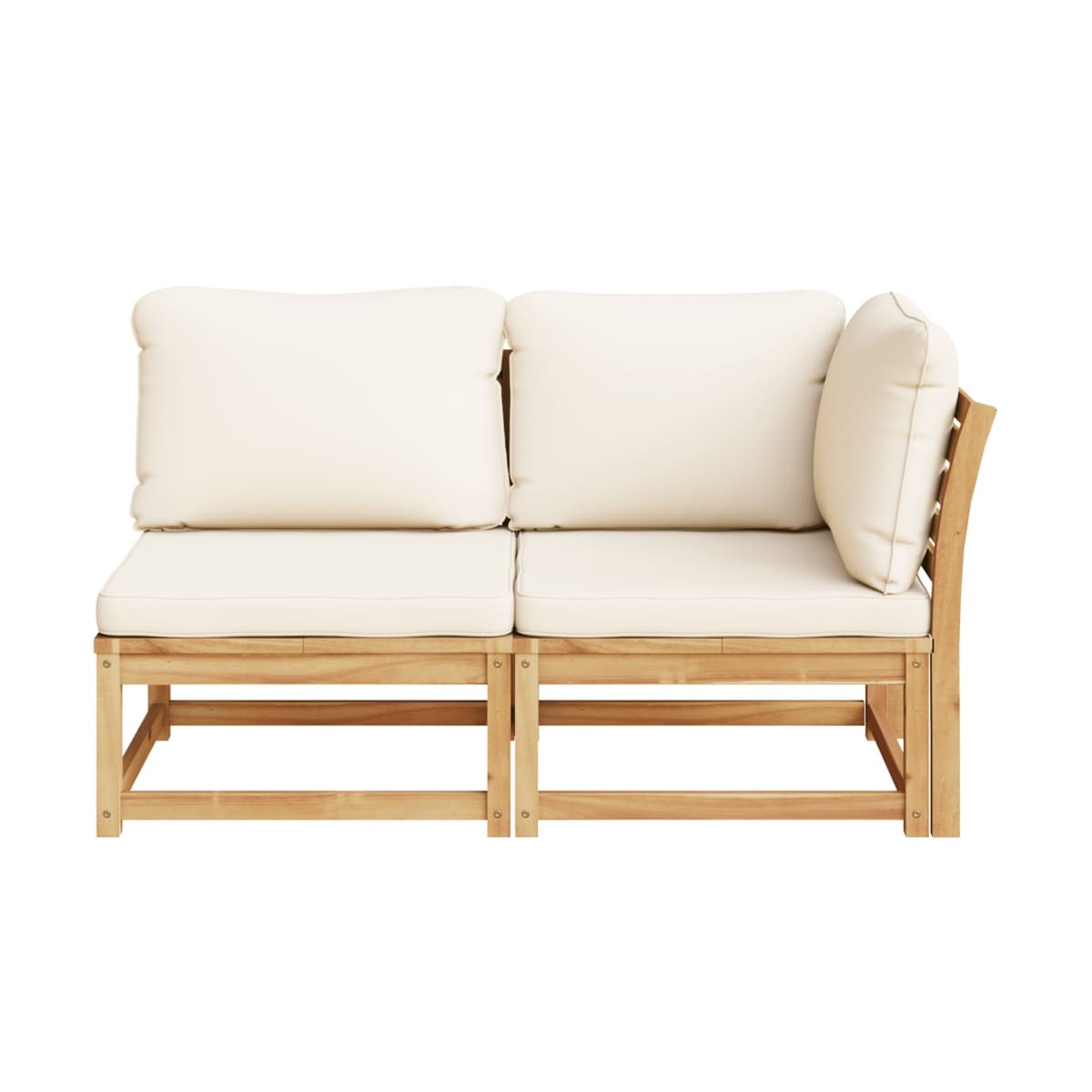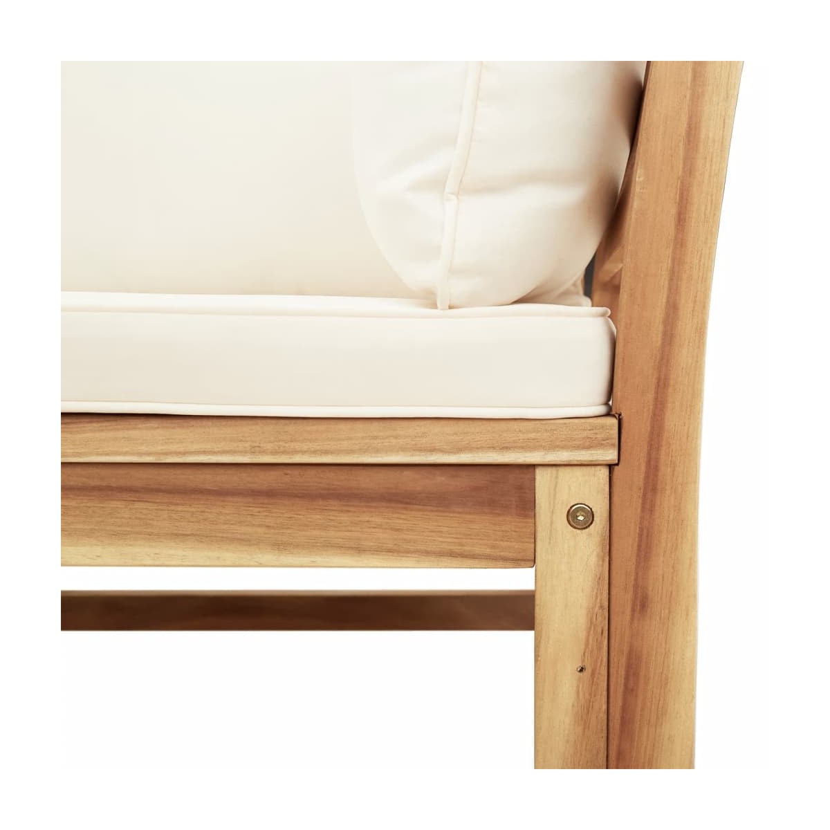 Este juego de salón de jardín de madera con cojines tiene un diseño elegante y es una excelente opción para relajarse y disfrutar en el jardín o patio. Material de primera calidad: La madera maciza de acacia es un bonito material natural. La madera de acacia es una madera dura tropical, densa, robusta y duradera.Experiencia de asiento cómoda: El respaldo y los cojines acolchados hacen que el juego de sofás de jardín sea más cómodo para sentarse.Diseño de listones: El diseño de listones del juego de salón de madera evita eficazmente que el agua se acumule, asegurando que el asiento permanezca seco y libre de posible putrefacción.Diseño modular: Este conjunto de muebles de jardín presenta un diseño modular, lo que lo hace completamente flexible y fácil de mover para adaptarse a cualquier entorno. ¡Puedes combinarlo con otros segmentos modulares disponibles en el menú desplegable para crear tus propias configuraciones personales de juegos de jardín! Información útil:Para asegurarte de que tus muebles de exterior se mantengan hermosos, recomendamos protegerlos con una funda impermeable.