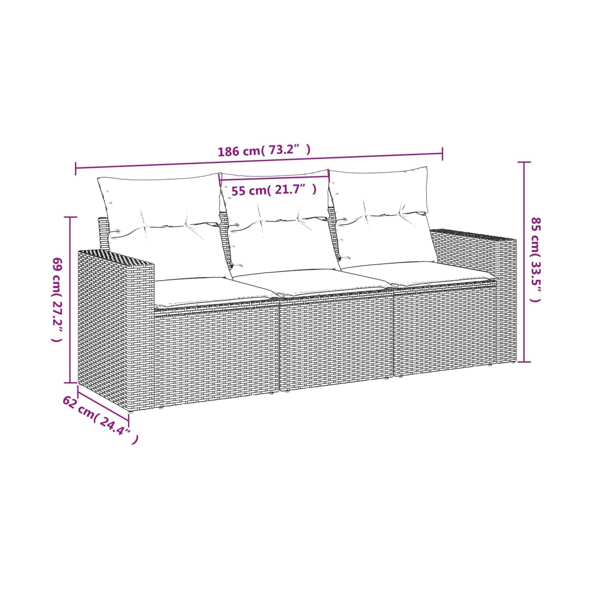 Este conjunto de sofás de jardín es el complemento perfecto para el jardín, terraza o patio, ya que proporciona un espacio confortable y acogedor para charlar con familiares y amigos o simplemente relajarte y disfrutar del aire libre. Material duradero: El ratán de PE, también conocido como ratán sintético, es un material sintético resistente y de bajo mantenimiento que se parece al ratán natural. Es ligero, fácil de limpiar y se usa comúnmente para muebles de exterior debido a su durabilidad y propiedades resistentes a la intemperie.Función de almacenaje con bolsa impermeable: Cada asiento de jardín cuenta con espacio de almacenamiento debajo del asiento, completo con una bolsa resistente al agua para guardar cojines, juguetes y otros artículos. Las bolsas interiores tienen una cubierta superior y pueden fijarse firmemente a los asientos con cierres adhesivos para mayor estabilidad.Experiencia de asiento cómoda: Estos muebles de exterior, completos con cojines acolchados gruesos, ofrecen una experiencia de asiento cómoda.Funda desenfundable y lavable: Estos cojines de asiento cuentan con fundas desenfundables para facilitar el lavado y mantenimiento.Diseño modular: Este conjunto de muebles de exterior tiene un diseño modular, por lo que es completamente flexible y fácil de mover, para que puedas crear una disposición de muebles de exterior personalizada. Información útil:Para asegurarte de que tus muebles de exterior se mantengan hermosos, recomendamos protegerlos con una funda impermeable.