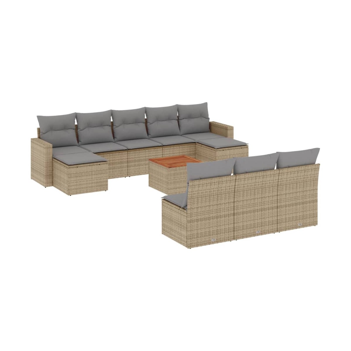 Este conjunto de sofás de jardín es el complemento perfecto para el jardín, terraza o patio, ya que proporciona un espacio confortable y acogedor para charlar con familiares y amigos o simplemente relajarte y disfrutar del aire libre. Material duradero: El ratán de PE, también conocido como ratán sintético, es un material sintético resistente y de bajo mantenimiento que se parece al ratán natural. Es ligero, fácil de limpiar y se usa comúnmente para muebles de exterior debido a su durabilidad y propiedades resistentes a la intemperie.Superficie estable y fácil de limpiar: Esta mesa de jardín tiene una superficie de madera de acacia que es resistente, duradero y fácil de limpiar con un paño húmedo.Experiencia de asiento cómoda: Estos muebles de exterior, completos con cojines acolchados gruesos, ofrecen una experiencia de asiento cómoda.Funda desenfundable y lavable: Estos cojines de asiento cuentan con fundas desenfundables para facilitar el lavado y mantenimiento.Diseño modular: Este conjunto de muebles de exterior tiene un diseño modular, por lo que es completamente flexible y fácil de mover, para que puedas crear una disposición de muebles de exterior personalizada. Información útil:Para asegurarte de que tus muebles de exterior se mantengan hermosos, recomendamos protegerlos con una funda impermeable.
