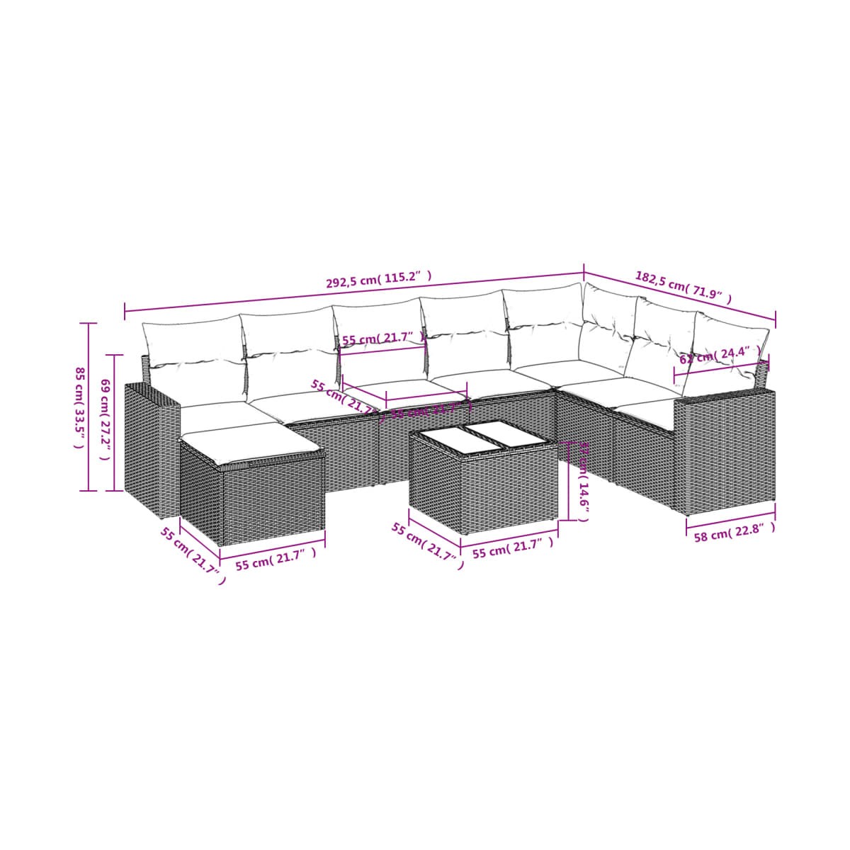Este conjunto de sofás de jardín es el complemento perfecto para el jardín, terraza o patio, ya que proporciona un espacio confortable y acogedor para charlar con familiares y amigos o simplemente relajarte y disfrutar del aire libre. Material duradero: El ratán de PE, también conocido como ratán sintético, es un material sintético resistente y de bajo mantenimiento que se parece al ratán natural. Es ligero, fácil de limpiar y se usa comúnmente para muebles de exterior debido a su durabilidad y propiedades resistentes a la intemperie.Función de almacenaje con bolsa impermeable: Cada asiento de jardín cuenta con espacio de almacenamiento debajo del asiento, completo con una bolsa resistente al agua para guardar cojines, juguetes y otros artículos. Las bolsas interiores tienen una cubierta superior y pueden fijarse firmemente a los asientos con cierres adhesivos para mayor estabilidad.Superficie de vidrio: La superficie de la mesa de exterior es de vidrio templado resistente y duradero, por lo que es fácil de limpiar con un paño húmedo y añade un toque de elegancia a tu espacio exterior.Funda desenfundable y lavable: Estos cojines de asiento cuentan con fundas desenfundables para facilitar el lavado y mantenimiento.Diseño modular: Este conjunto de muebles de exterior tiene un diseño modular, por lo que es completamente flexible y fácil de mover, para que puedas crear una disposición de muebles de exterior personalizada. Información útil:Para asegurarte de que tus muebles de exterior se mantengan hermosos, recomendamos protegerlos con una funda impermeable.
