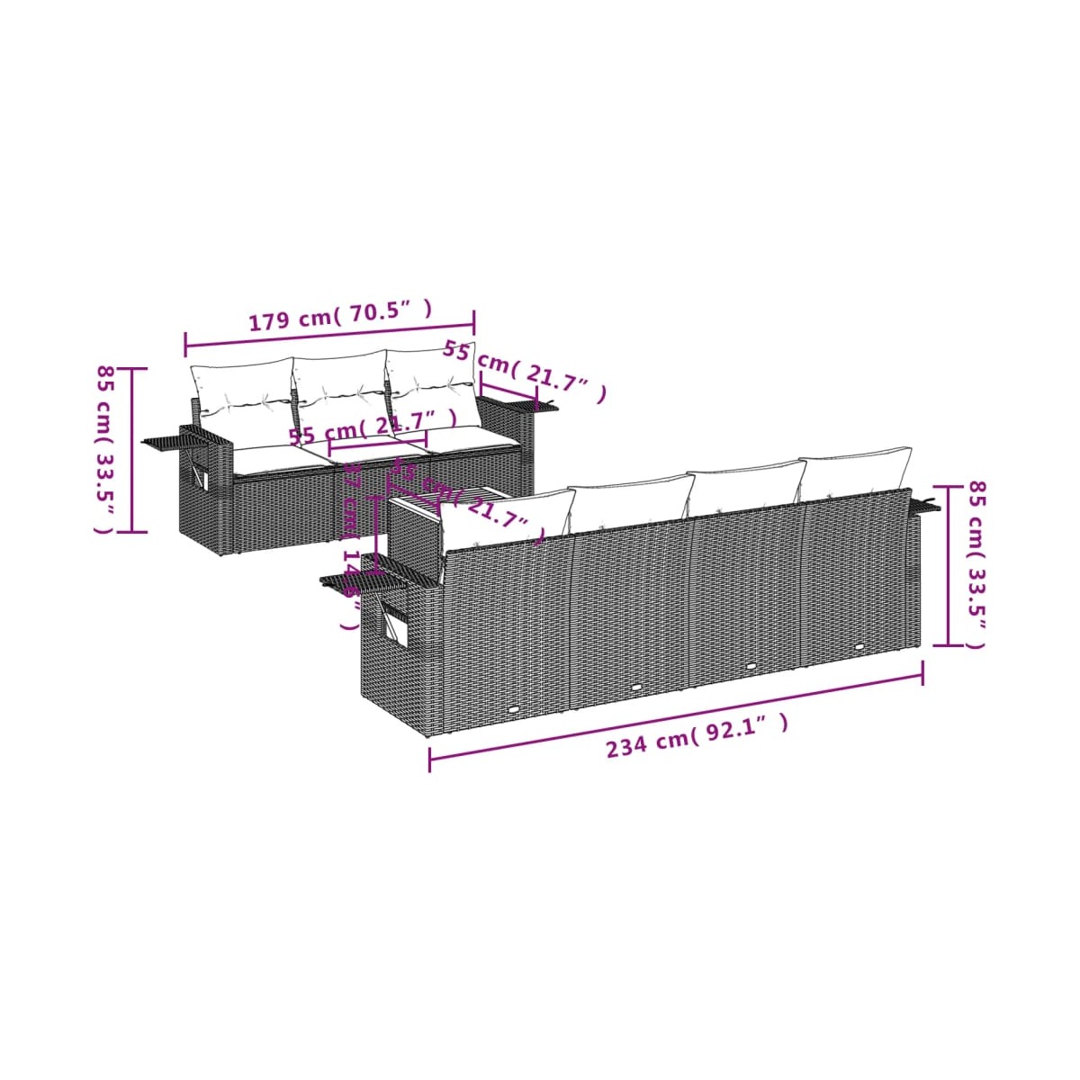 Este conjunto de sofás de jardín es el complemento perfecto para el jardín, terraza o patio, ya que proporciona un espacio confortable y acogedor para charlar con familiares y amigos o simplemente relajarte y disfrutar del aire libre. Material duradero: El ratán PE, también conocido como ratán sintético, es un material sintético resistente y de bajo mantenimiento que se parece al ratán natural. Es ligero, fácil de limpiar y se usa comúnmente para muebles de exterior debido a su durabilidad y propiedades resistentes a la intemperie.Cómoda mesa auxiliar: Este mueble de exterior cuenta con una mesa auxiliar plegable con un resorte de gas en los reposabrazos, lo que proporciona un lugar conveniente para mantener tus elementos esenciales al alcance de la mano.Superficie estable y fácil de limpiar: Esta mesa de jardín tiene una superficie de madera de acacia que es resistente, duradero y fácil de limpiar con un paño húmedo.Funda desenfundable y lavable: Estos cojines de asiento cuentan con fundas desenfundables para facilitar el lavado y mantenimiento.Diseño modular: Este conjunto de muebles de exterior tiene un diseño modular, por lo que es completamente flexible y fácil de mover, para que puedas crear una disposición de muebles de exterior personalizada. Información útil:Para asegurarte de que tus muebles de exterior se mantengan hermosos, recomendamos protegerlos con una funda impermeable.