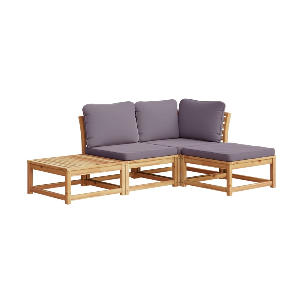 Este juego de salón de jardín de madera con cojines tiene un diseño elegante y es una excelente opción para relajarse y disfrutar en el jardín o patio. Material de primera calidad: La madera maciza de acacia es un bonito material natural. La madera de acacia es una madera dura tropical, densa, robusta y duradera.Experiencia de asiento cómoda: El respaldo y los cojines acolchados hacen que el juego de sofás de jardín sea más cómodo para sentarse.Diseño de listones: El diseño de listones del juego de salón de madera evita eficazmente que el agua se acumule, asegurando que el asiento permanezca seco y libre de posible putrefacción.Diseño modular: Este conjunto de muebles de exterior tiene un diseño modular, por lo que es completamente flexible y fácil de mover, para que puedas crear una disposición de muebles de exterior personalizada. Información útil:Para asegurarte de que tus muebles de exterior se mantengan hermosos, recomendamos protegerlos con una funda impermeable.