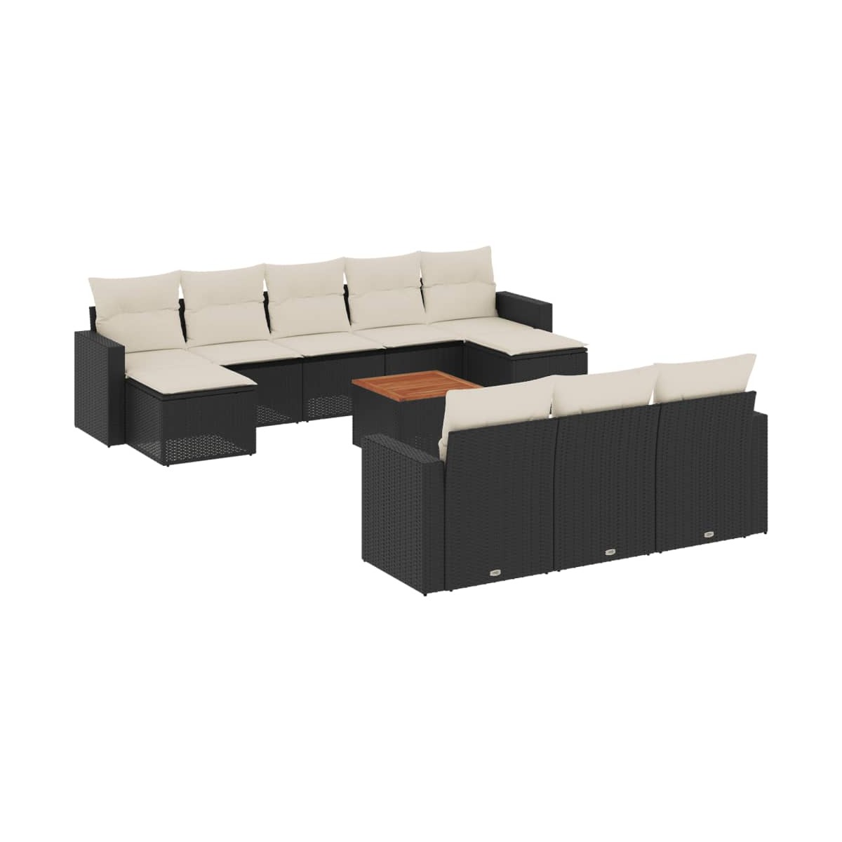 Este conjunto de sofás de jardín es el complemento perfecto para el jardín, terraza o patio, ya que proporciona un espacio confortable y acogedor para charlar con familiares y amigos o simplemente relajarte y disfrutar del aire libre. Material duradero: El ratán de PE, también conocido como ratán sintético, es un material sintético resistente y de bajo mantenimiento que se parece al ratán natural. Es ligero, fácil de limpiar y se usa comúnmente para muebles de exterior debido a su durabilidad y propiedades resistentes a la intemperie.Superficie estable y fácil de limpiar: Esta mesa de jardín tiene una superficie de madera de acacia que es resistente, duradero y fácil de limpiar con un paño húmedo.Experiencia de asiento cómoda: Estos muebles de exterior, completos con cojines acolchados gruesos, ofrecen una experiencia de asiento cómoda.Funda desenfundable y lavable: Estos cojines de asiento cuentan con fundas desenfundables para facilitar el lavado y mantenimiento.Diseño modular: Este conjunto de muebles de exterior tiene un diseño modular, por lo que es completamente flexible y fácil de mover, para que puedas crear una disposición de muebles de exterior personalizada. Información útil:Para asegurarte de que tus muebles de exterior se mantengan hermosos, recomendamos protegerlos con una funda impermeable.