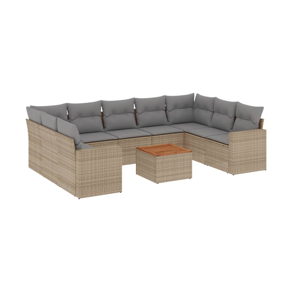 Este conjunto de sofás de jardín es el complemento perfecto para el jardín, terraza o patio, ya que proporciona un espacio confortable y acogedor para charlar con familiares y amigos o simplemente relajarte y disfrutar del aire libre. Material duradero: El ratán de PE, también conocido como ratán sintético, es un material sintético resistente y de bajo mantenimiento que se parece al ratán natural. Es ligero, fácil de limpiar y se usa comúnmente para muebles de exterior debido a su durabilidad y propiedades resistentes a la intemperie.Superficie estable y fácil de limpiar: Esta mesa de jardín tiene una superficie de madera de acacia que es resistente, duradero y fácil de limpiar con un paño húmedo.Experiencia de asiento cómoda: Estos muebles de exterior, completos con cojines acolchados gruesos, ofrecen una experiencia de asiento cómoda.Funda desenfundable y lavable: Estos cojines de asiento cuentan con fundas desenfundables para facilitar el lavado y mantenimiento.Diseño modular: Este conjunto de muebles de exterior tiene un diseño modular, por lo que es completamente flexible y fácil de mover, para que puedas crear una disposición de muebles de exterior personalizada. Información útil:Para asegurarte de que tus muebles de exterior se mantengan hermosos, recomendamos protegerlos con una funda impermeable.