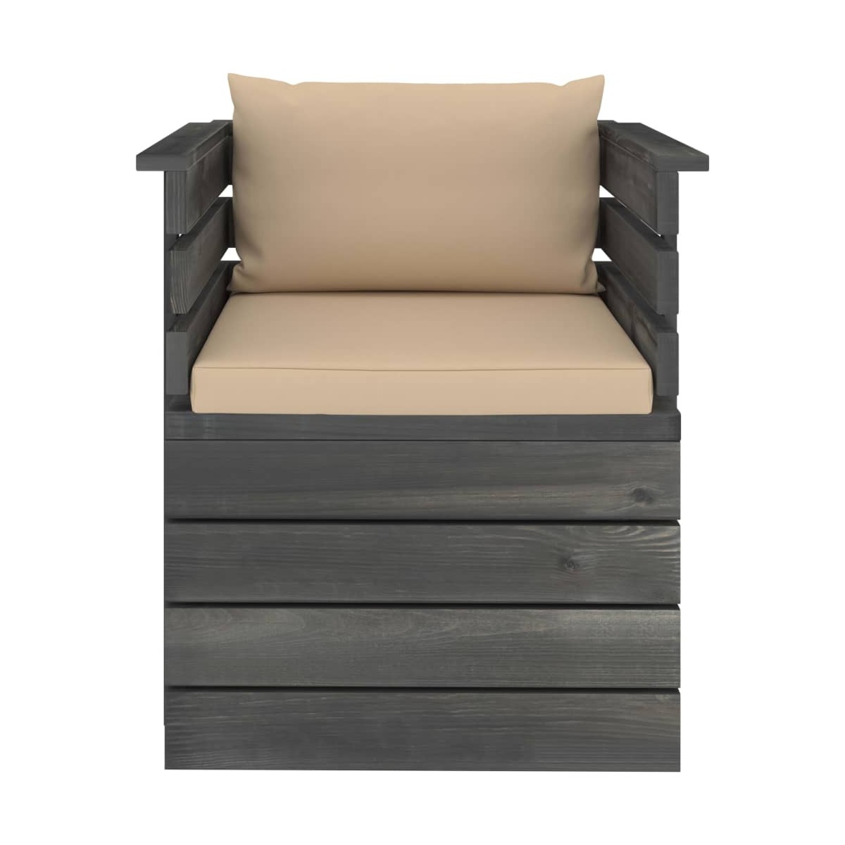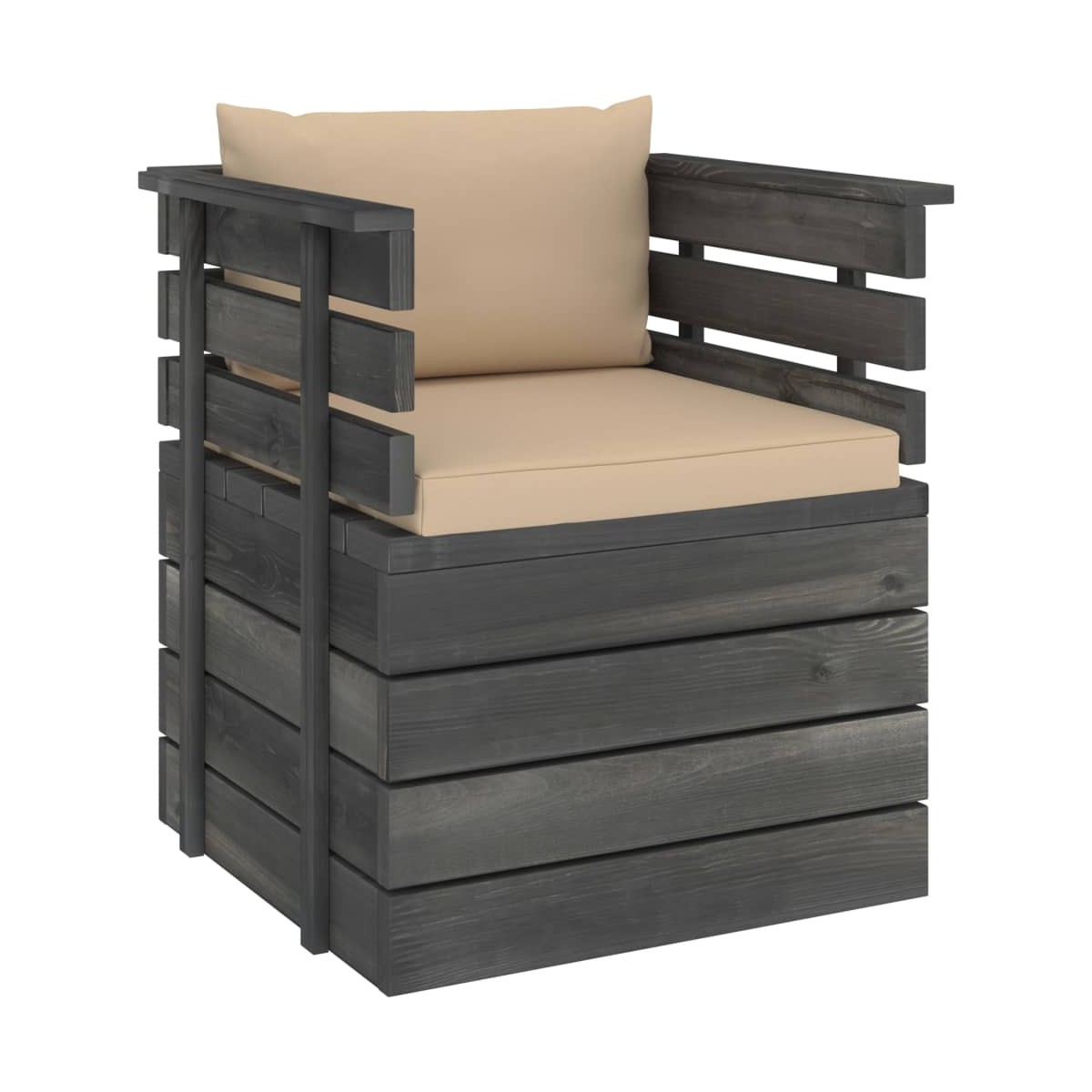 Este moderno sillón de palets de jardín con cojines es una excelente opción para que te relajes y disfrutes del buen tiempo, eches una siesta o charles con tu familia o amigos. Con un diseño de palets atemporal, este sofá de madera agrega un toque de encanto rústico a tu patio, jardín o salón. El sofá de jardín está hecho de madera maciza de pino, lo que lo hace duradero y estable. Este sofá tiene una construcción maciza y requiere poco mantenimiento. Gracias a la tapicería 100% de poliéster y al grueso acolchado, los cojines para palés son suaves y proporcionan el máximo confort. Es ideal para noches de cine en familia, jugar a videojuegos y disfrutar del buen tiempo en el porche. Este asiento de patio también tiene un diseño modular, lo que lo hace completamente flexible y fácil de mover para adaptarse a cualquier entorno. ¡Puedes combinarlo con otros segmentos modulares para crear un salón de jardín a tu gusto! Ten en cuenta que la madera es un producto natural y puede presentar ligeras imperfecciones.