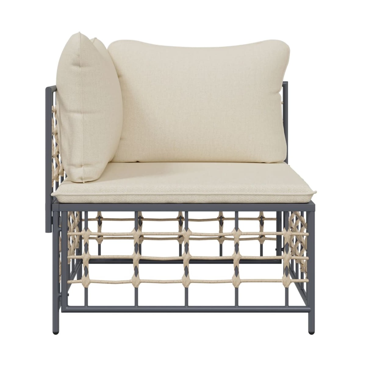 Este moderno sofá esquinero de jardín, con un diseño elegante y contemporáneo, es adecuado para comer o relajarse en el jardín. Material resistente a la intemperie: El ratán PE, también conocido como ratán sintético, es resistente a la intemperie y fácil de limpiar. La parte exterior se mantiene hermosa durante mucho tiempo. Ofrece una gran calidad, comodidad y aspecto estético.Estructura robusta: La estructura de acero con recubrimiento en polvo hace que el sofá de jardín sea resistente y estable para usar a diario al aire libre.Cómodo asiento: El respaldo aporta un plus de comodidad al sofá de exterior. Además, los cojines gruesos y acolchados proporcionan comodidad al asiento.Diseño modular: El asiento de jardín es flexible y fácil de mover, por lo que puedes combinarlo con otros segmentos modulares de la tienda web para crear tus propias configuraciones personales de muebles de jardín. Nota:Para asegurarte de que tus muebles de exterior se mantengan hermosos, recomendamos protegerlos con una funda impermeable.