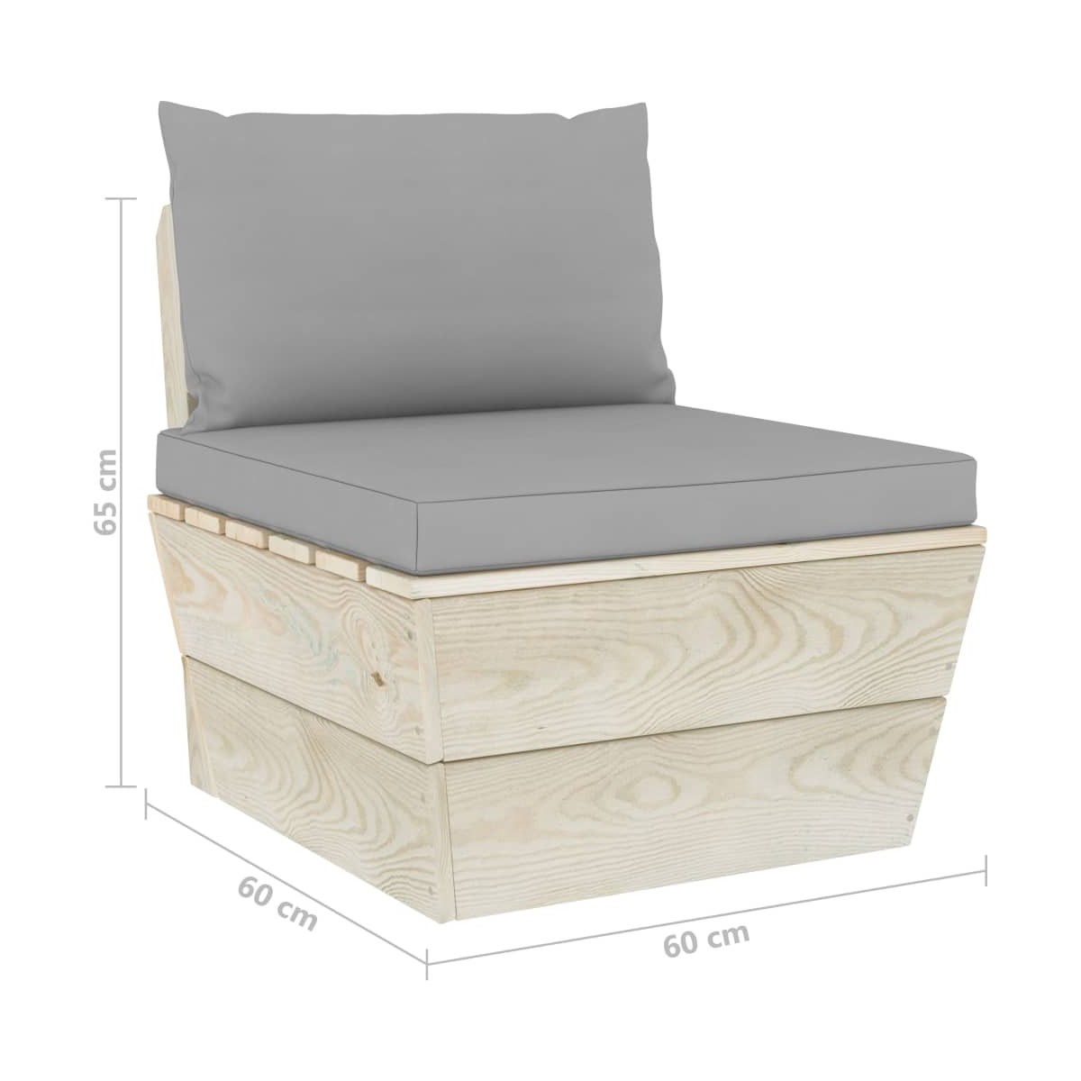 Este moderno sofá central de palets de jardín con cojines es una excelente opción para que te relajes y disfrutes del buen tiempo, eches una siesta o charles con tu familia o amigos. Con un diseño de palets atemporal, este sofá de madera agrega un toque de encanto rústico a tu patio, jardín o salón. El sofá de jardín está hecho de madera de abeto impregnada, lo que lo hace duradero y estable. Este sofá central tiene una construcción maciza y requiere poco mantenimiento. Gracias a la tapicería 100% poliéster y al grueso acolchado, los cojines son suaves y proporcionan el máximo confort. Es ideal para noches de cine en familia, jugar a videojuegos y disfrutar del buen tiempo en el porche. Este asiento de patio también presenta un diseño modular, lo que lo hace completamente flexible y fácil de mover para adaptarse a cualquier entorno. ¡Puedes combinarlo con otros segmentos modulares para crear tu propio ambiente de salón de jardín según tu gusto! Ten en cuenta que la madera es un producto natural y puede presentar ligeras imperfecciones.