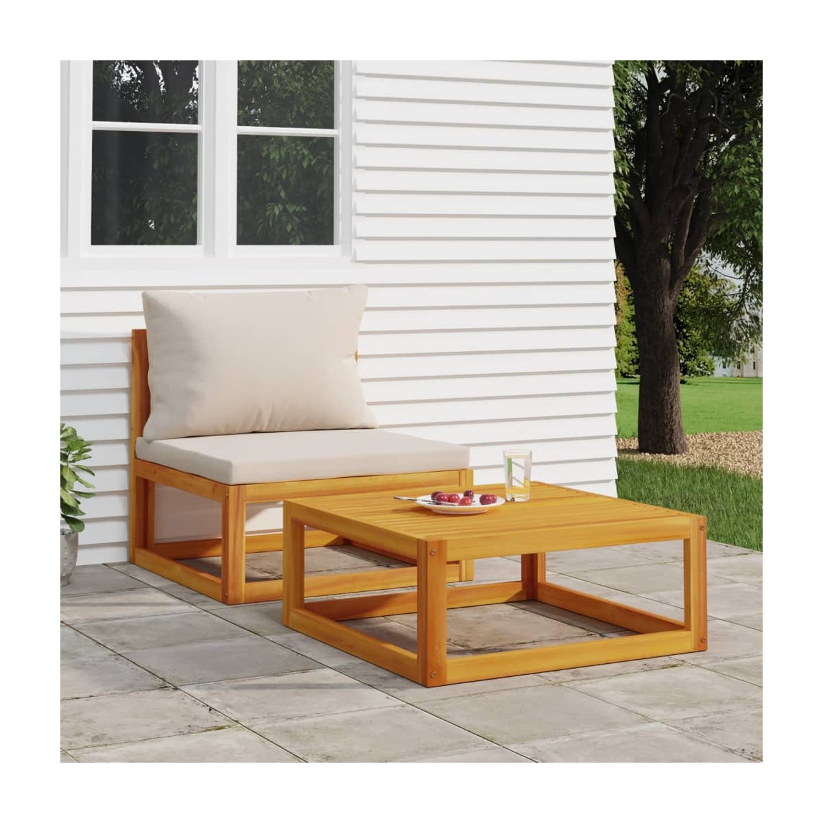 ¿Buscas algo más refinado y atractivo para el espacio exterior de la casa? Esta mesa de centro de madera es una opción óptima para ti. Madera maciza de acacia: Esta mesa de patio está fabricada en madera maciza de acacia. La madera maciza de acacia es un bonito material natural. La madera de acacia es una madera dura tropical, densa, robusta y duradera.Excelente artesanía: La artesanía y las hermosas vetas de la madera hacen que cada mueble sea único y ligeramente diferente de los demás. Diseño práctico: La resistente superficie diseñada con listones te ofrece espacio para colocar aperitivos, fruteros, artículos decorativos y otros artículos básicos. Información útil:Para facilitar al máximo el montaje, cada producto se entrega con un manual.Nota:Para asegurarte de que tus muebles de exterior se mantengan hermosos, recomendamos protegerlos con una funda impermeable.